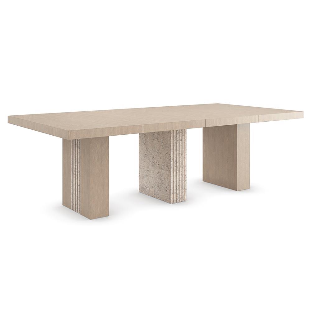 Abrielle Modern Classic Oak Travertine Extendable Dining Table - 48-96"W