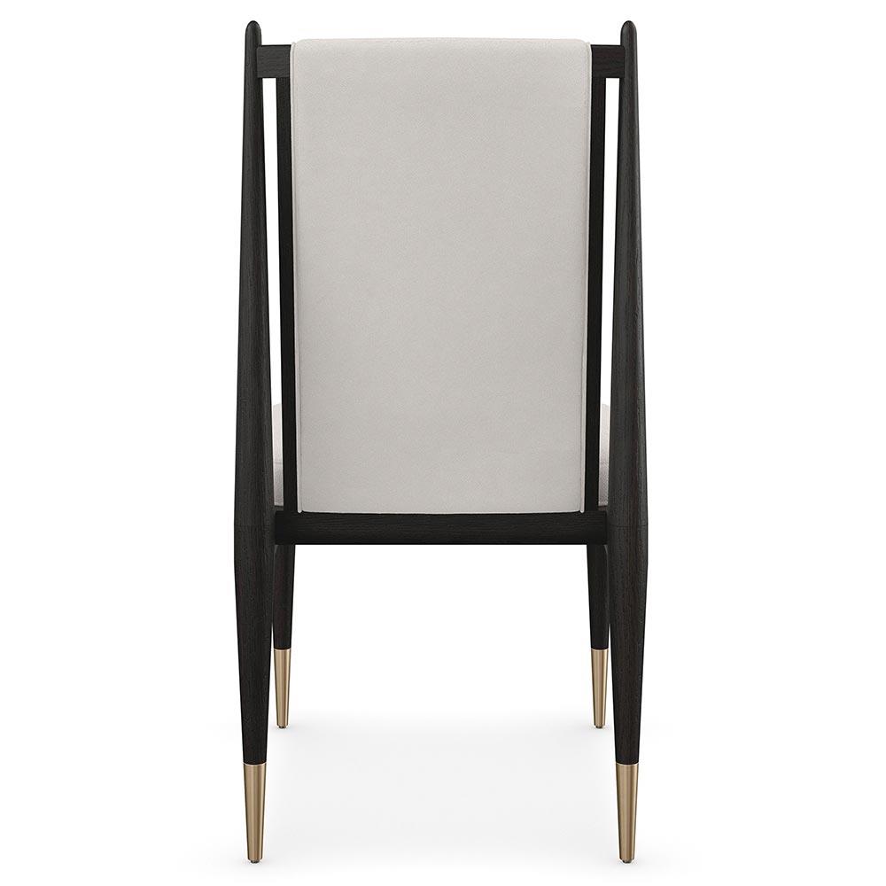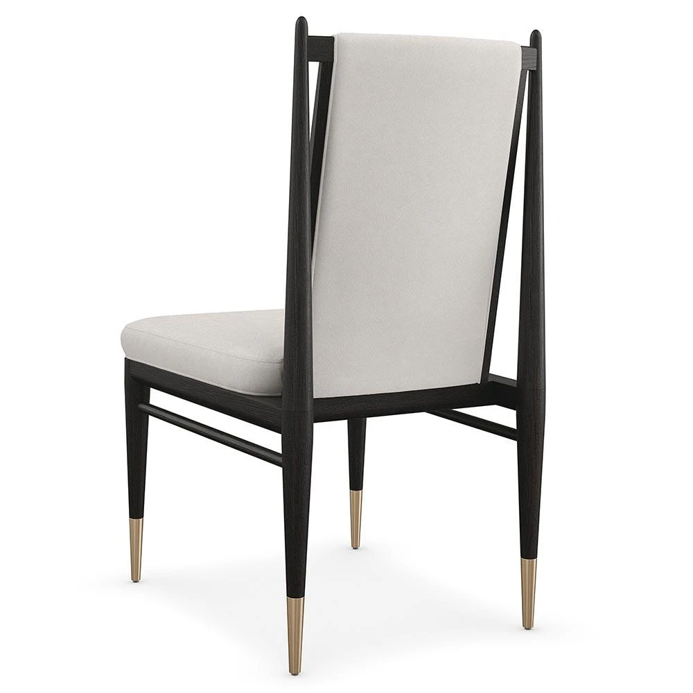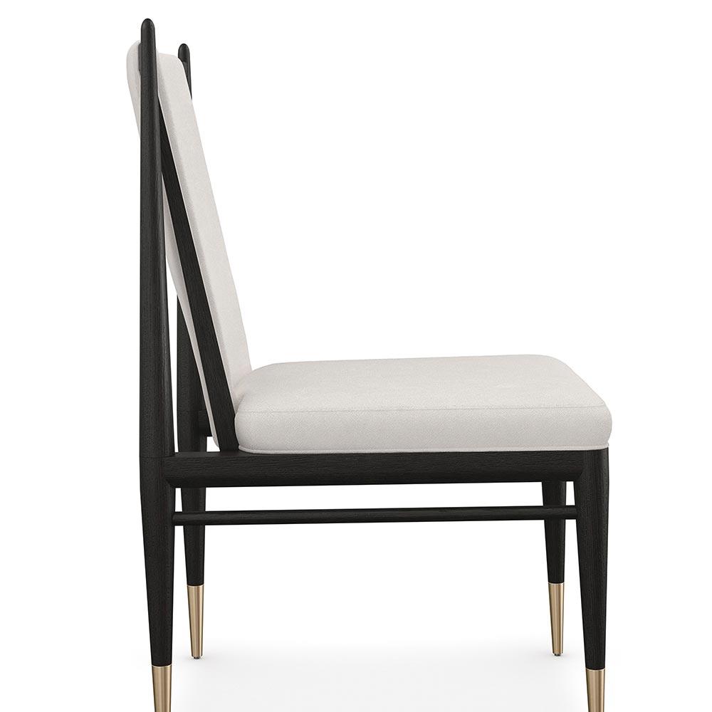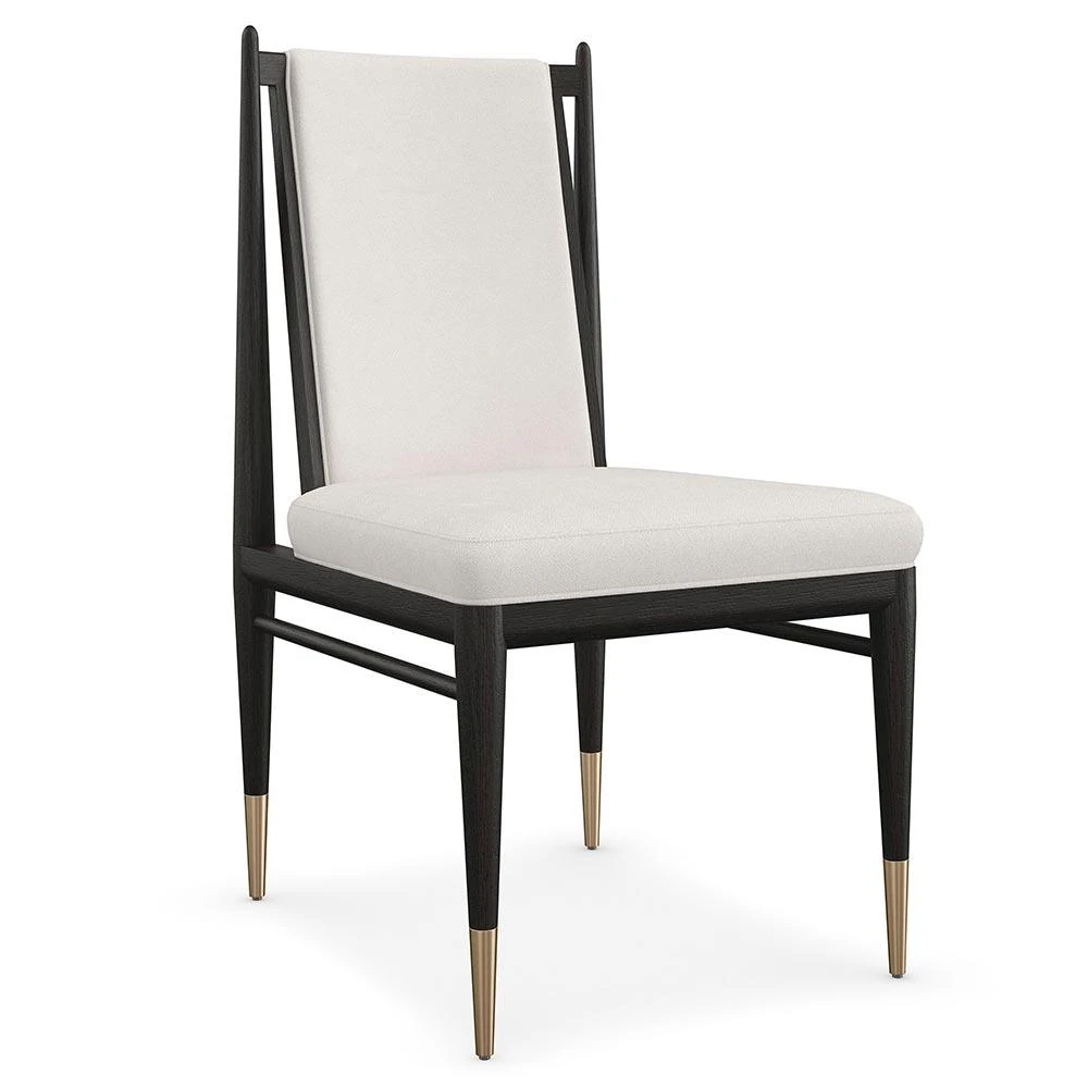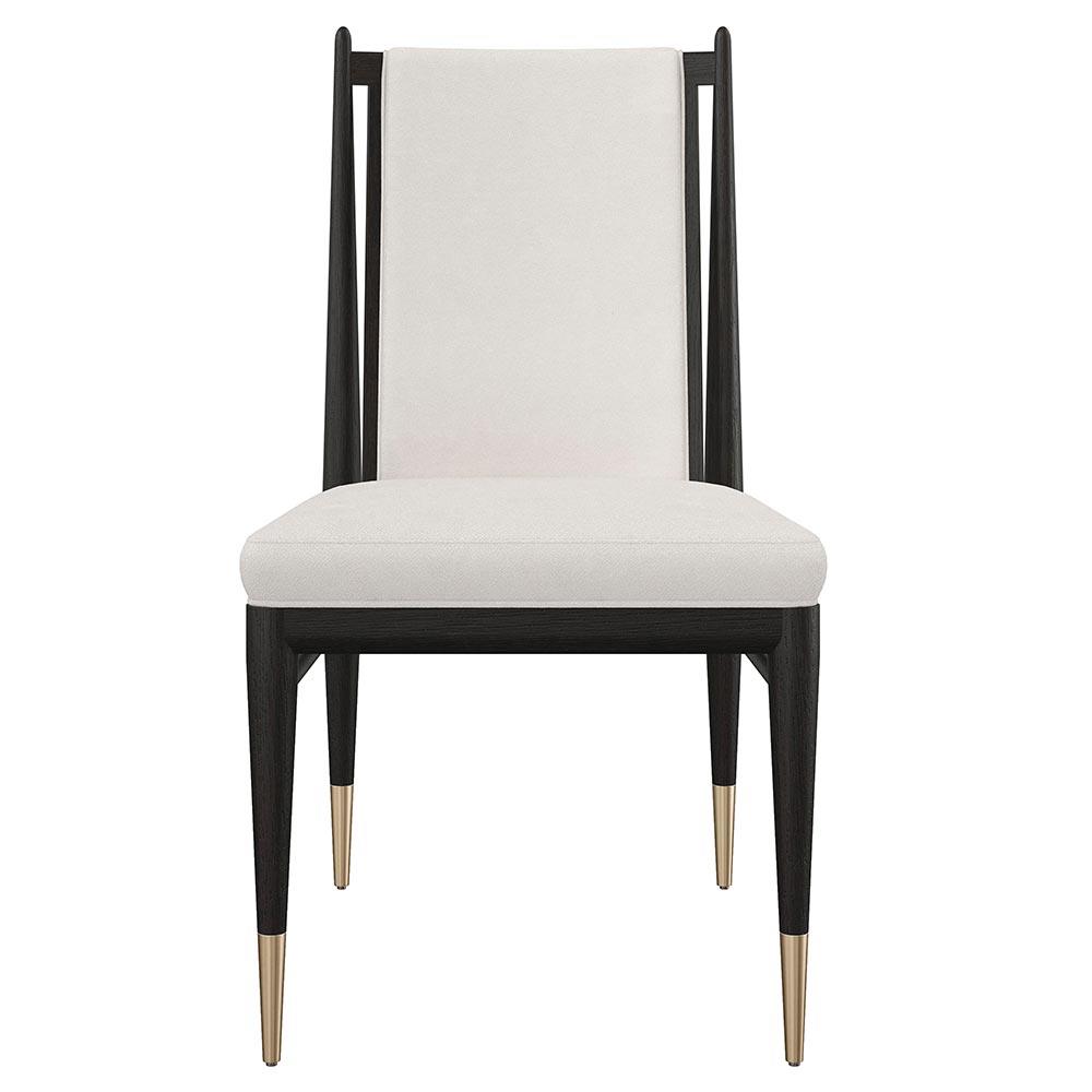 • Ezra Mid Century Off White Upholstered Dark Brown Wood Brass Metal Side Chair|Kathy Kuo Home