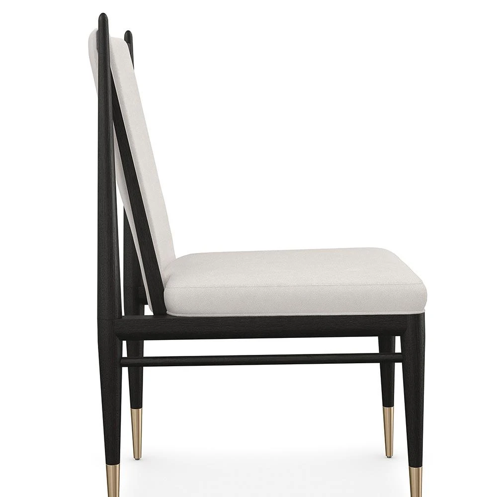 Ezra Mid Century Off White Upholstered Dark Brown Wood Brass Metal Side Chair