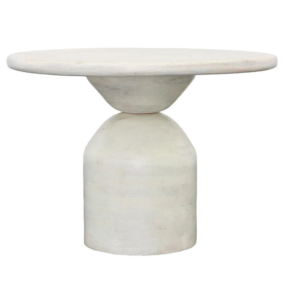 Mendez Mid Century Whitewash Mango Wood Round Pedestal Dining Table - 42"W