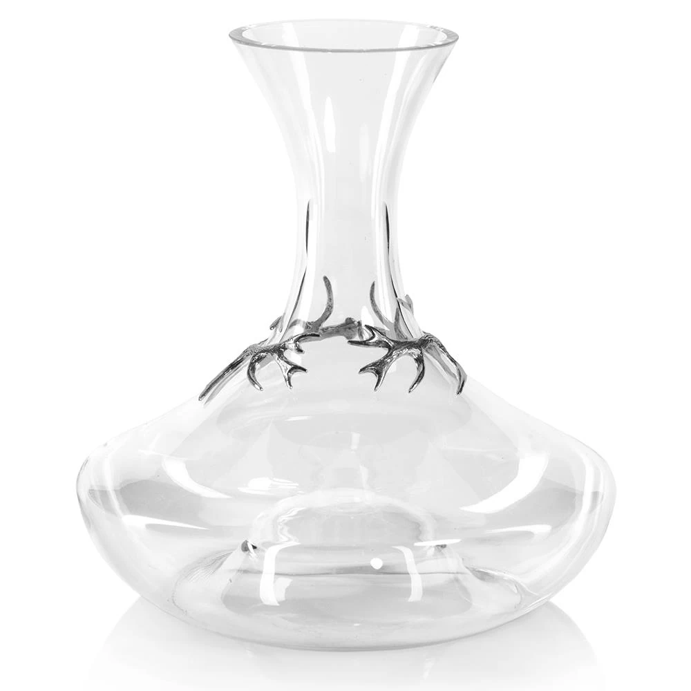 David Rustic Lodge Clear Glass Pewter Antler Accent Decanter