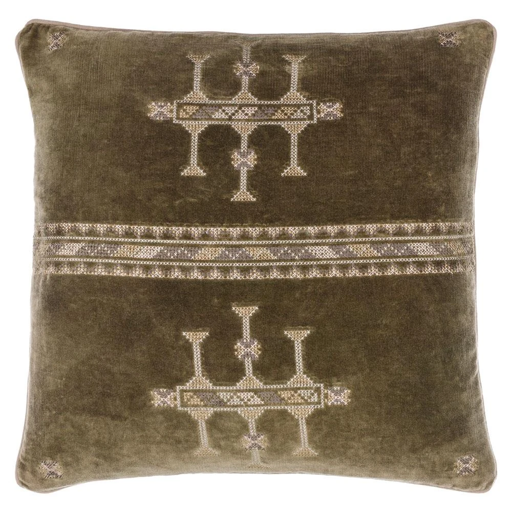 Evan Global Bazaar Green Velour Cotton Decorative Throw Pillow - 20x20