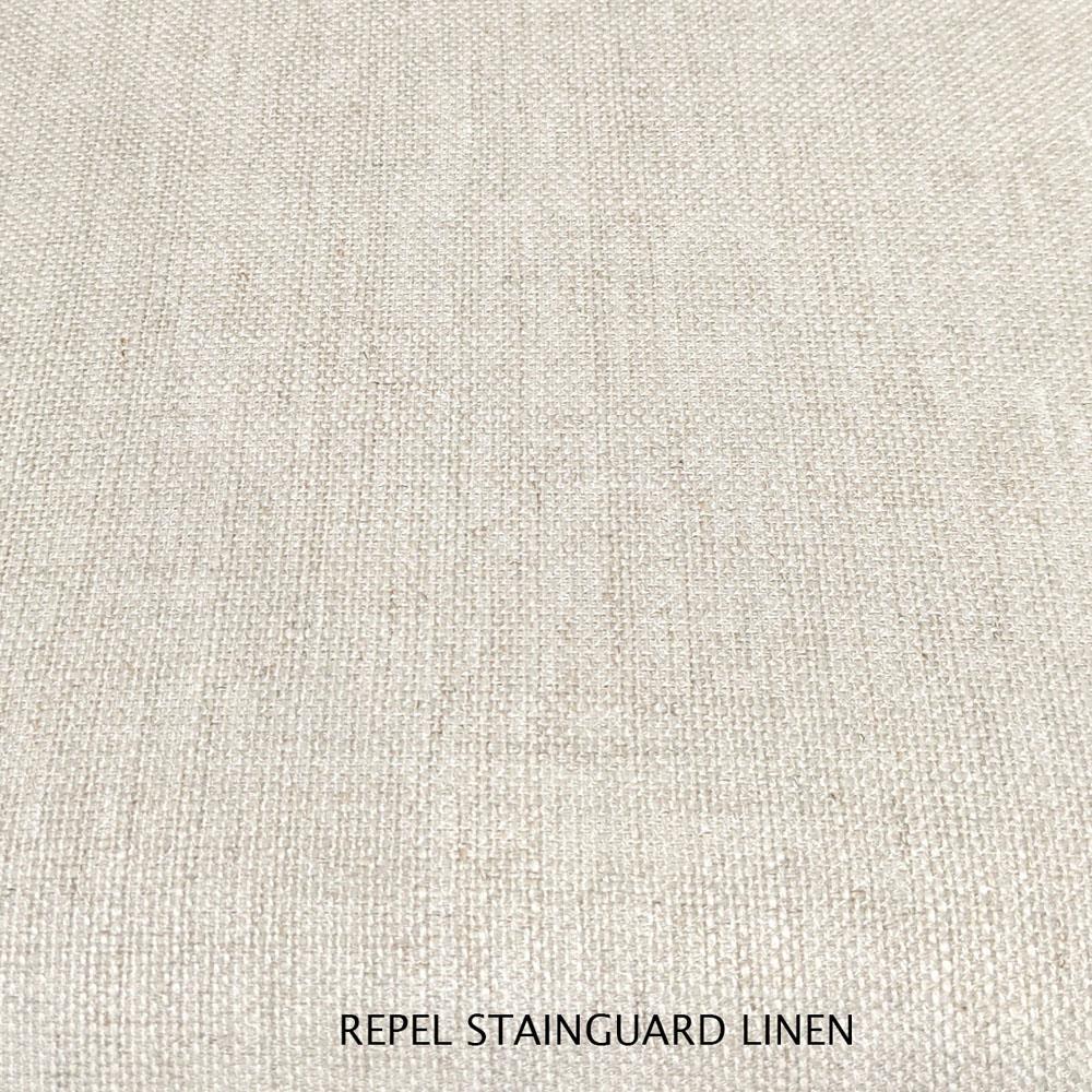 • Upholstered in off white fabric. Fabric content: Repel stainguard linen