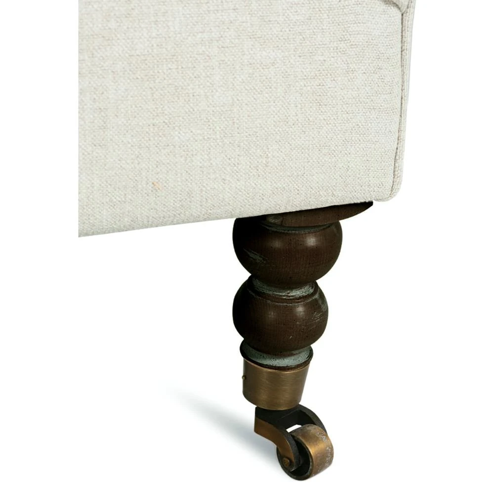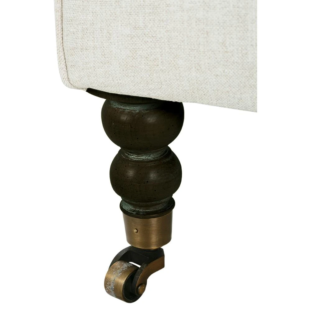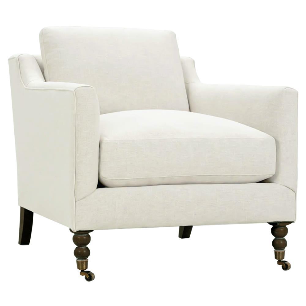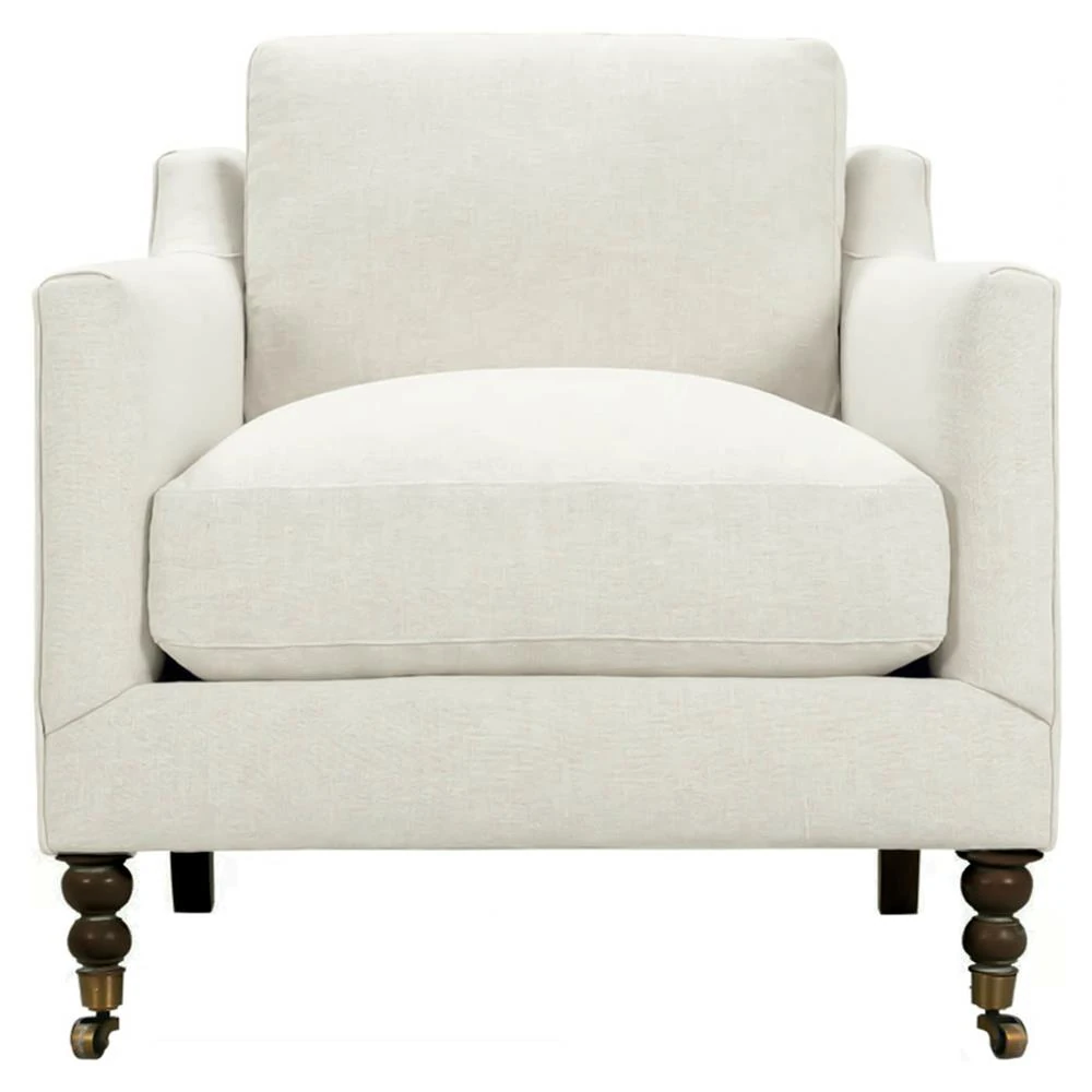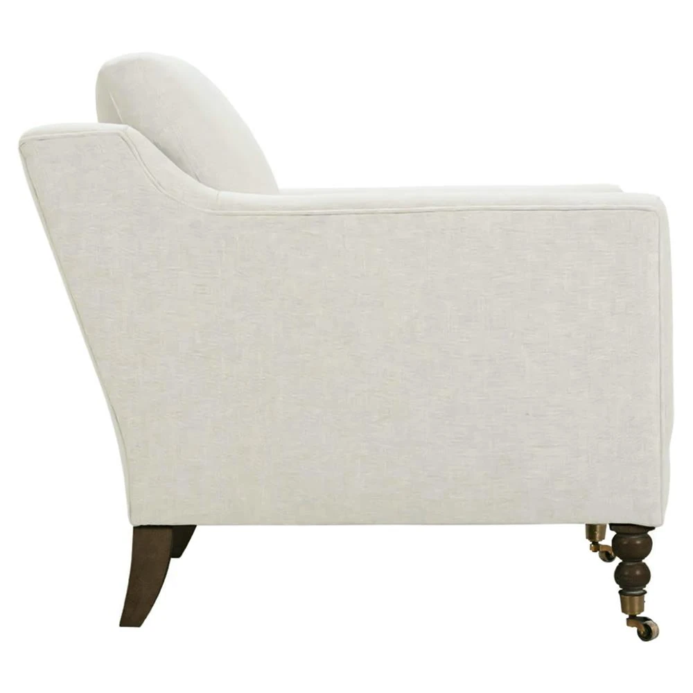 Madeline French Cream Performance Chocolate Wood Brass Caster Arm Chair