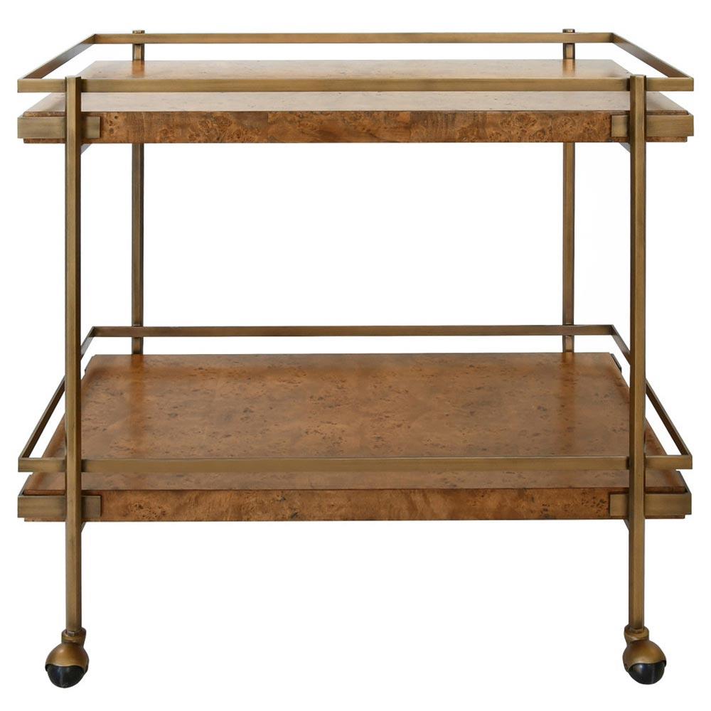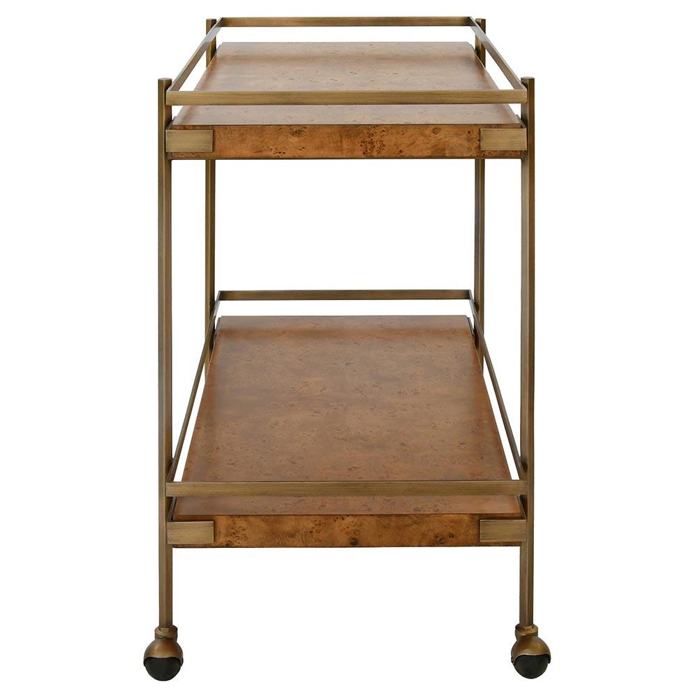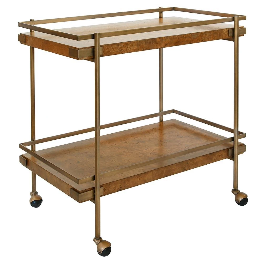 • Worlds Away Cash Modern Classic Brown Burl Wood Antique Brass Bar Cart|Kathy Kuo Home