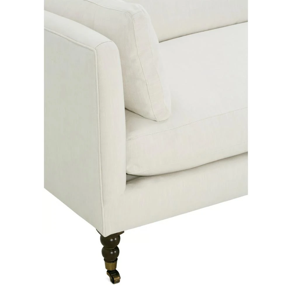 Madeline French Cream Performance Brown Wood Brass Casters Sofa - 71"W