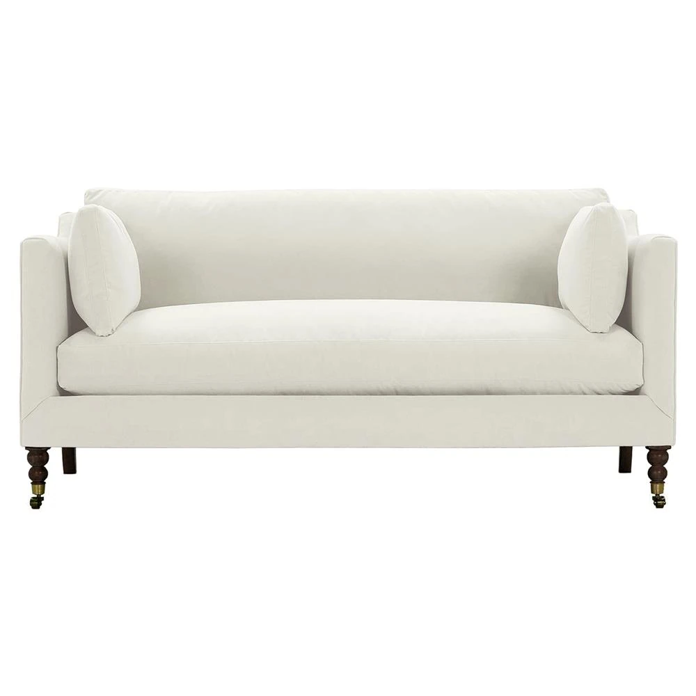 • Mon Modern Classic White Upholstered Performance Natural Wood Sofa - 87"W|Kathy Kuo Home