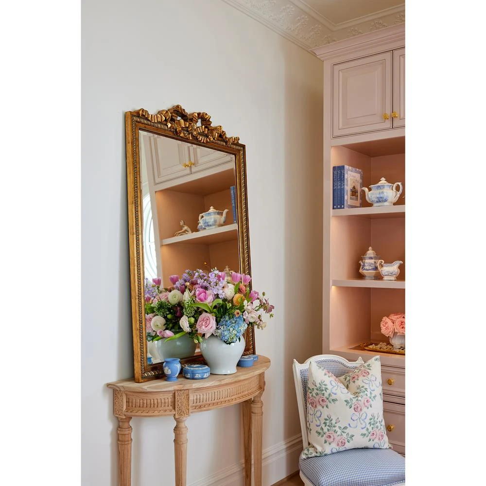 • Vivianna Updated Traditional Blue Bone Inlay Floral Wall Mirror|Kathy Kuo Home