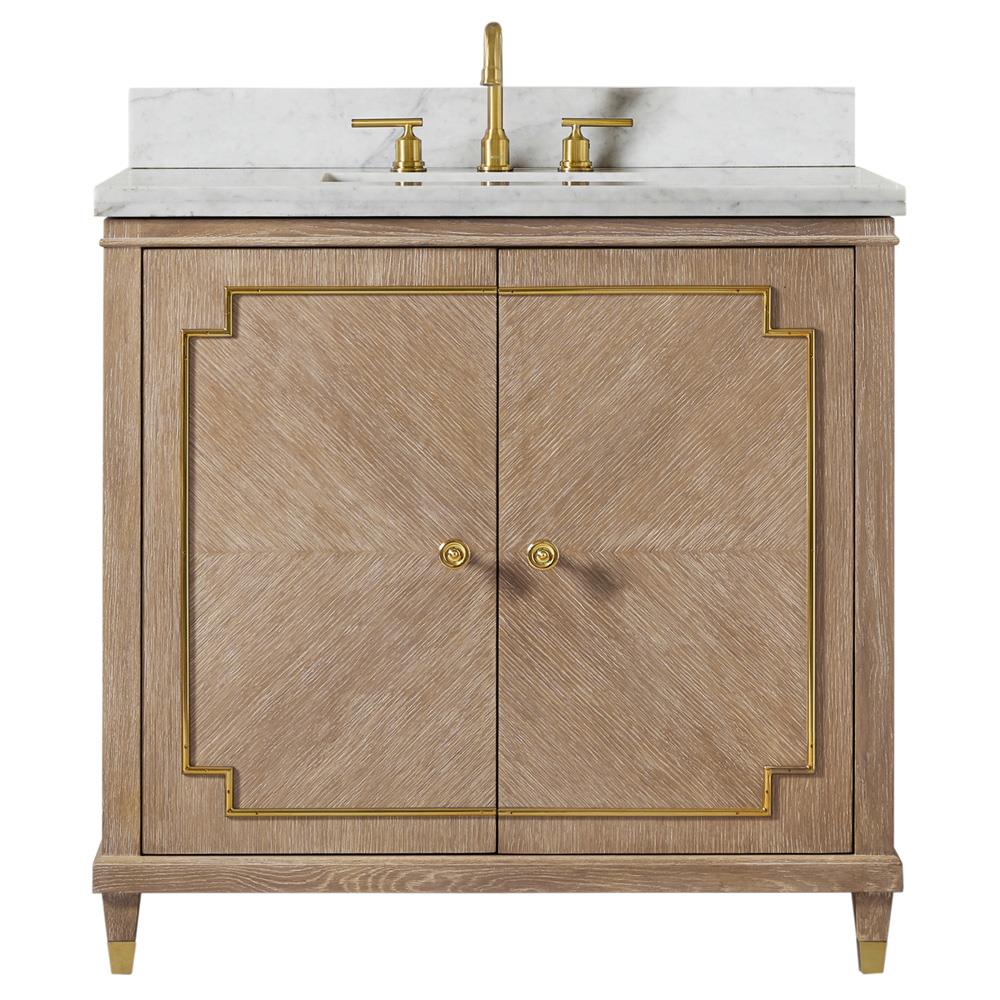 • Gareth French Country Carrara Marble Whitewashed Wood Vanity Sink - 36"|Kathy Kuo Home