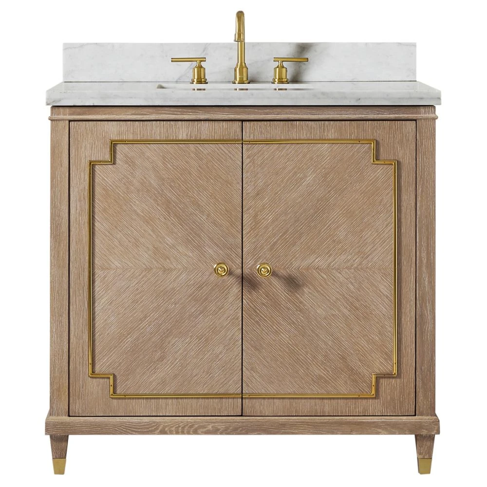 • Cynthia Modern Classic Carrara Marble Bleached Oak Vanity Sink - 36"|Kathy Kuo Home