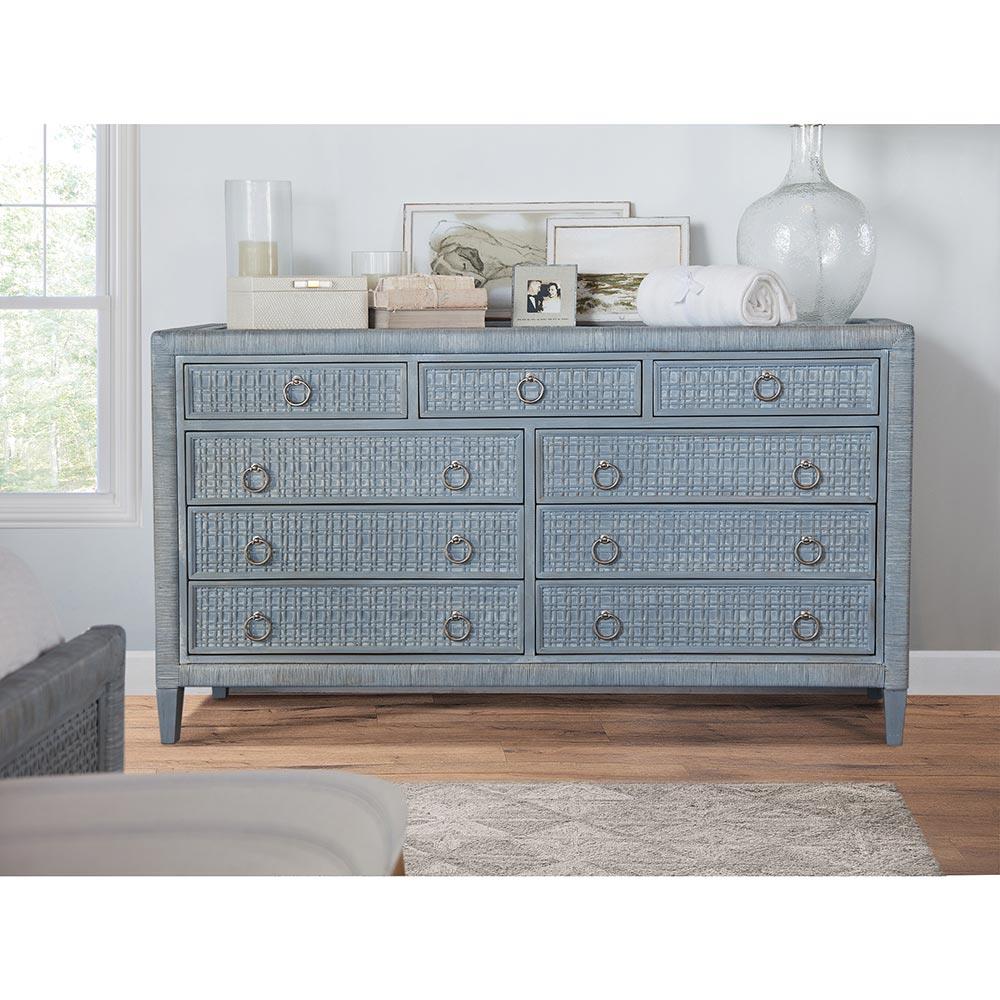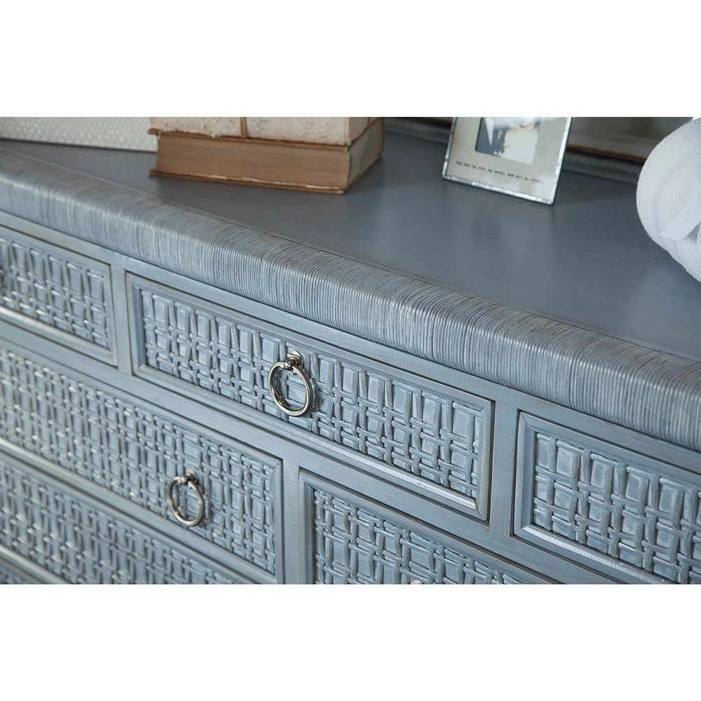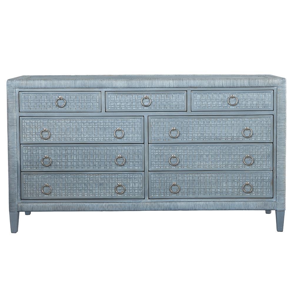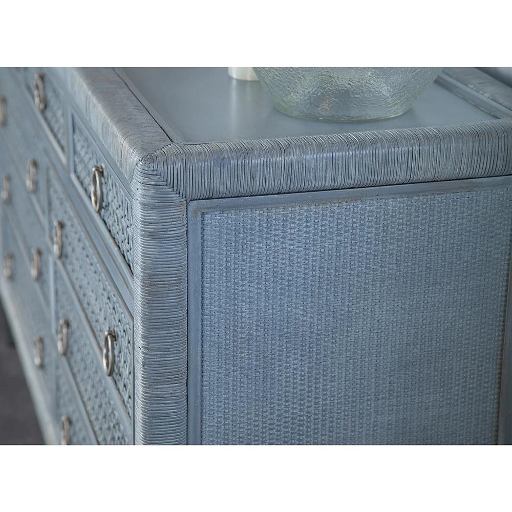 Kalea Coastal Beach Blue Woven Rattan 9 Drawer Dresser
