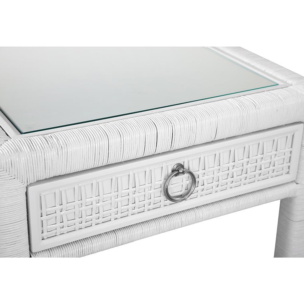 Kalea Coastal Beach White Woven Rattan Nightstand