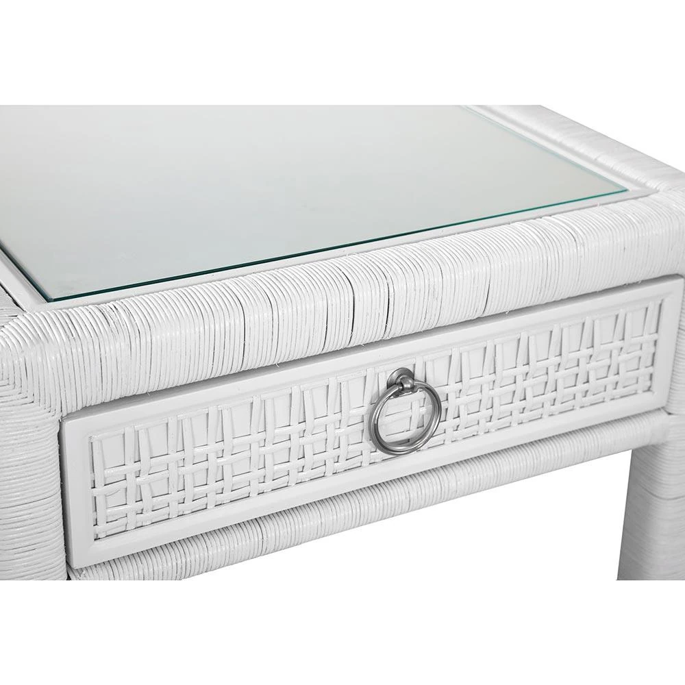 Elliana Coastal Beach White Woven Rattan Nightstand