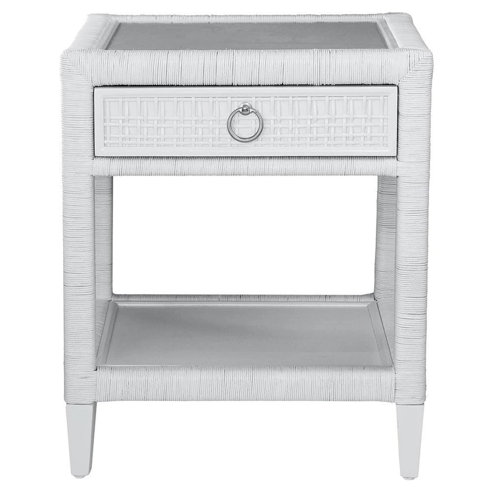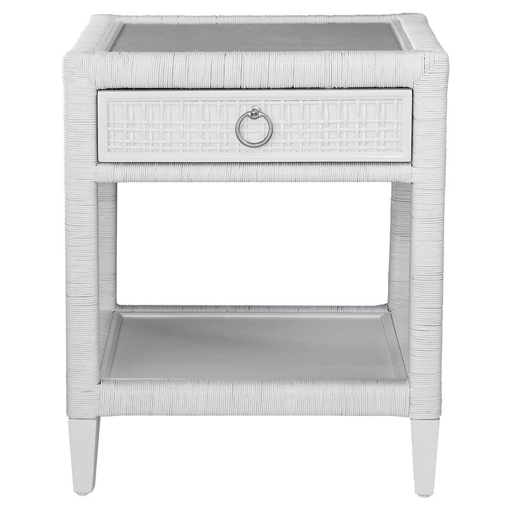• Elliana Coastal Beach White Woven Rattan Nightstand|Kathy Kuo Home