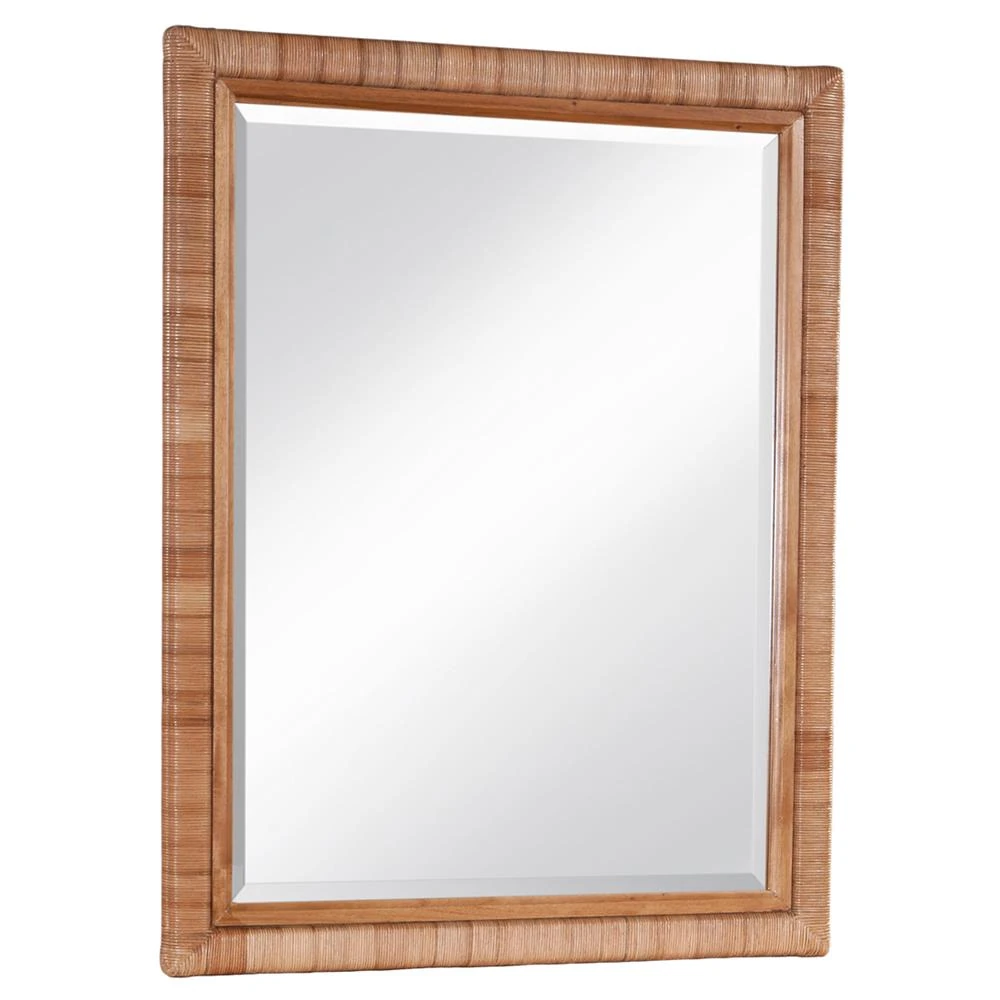 Kalea Coastal Beach Brown Woven Rattan Dresser Mirror