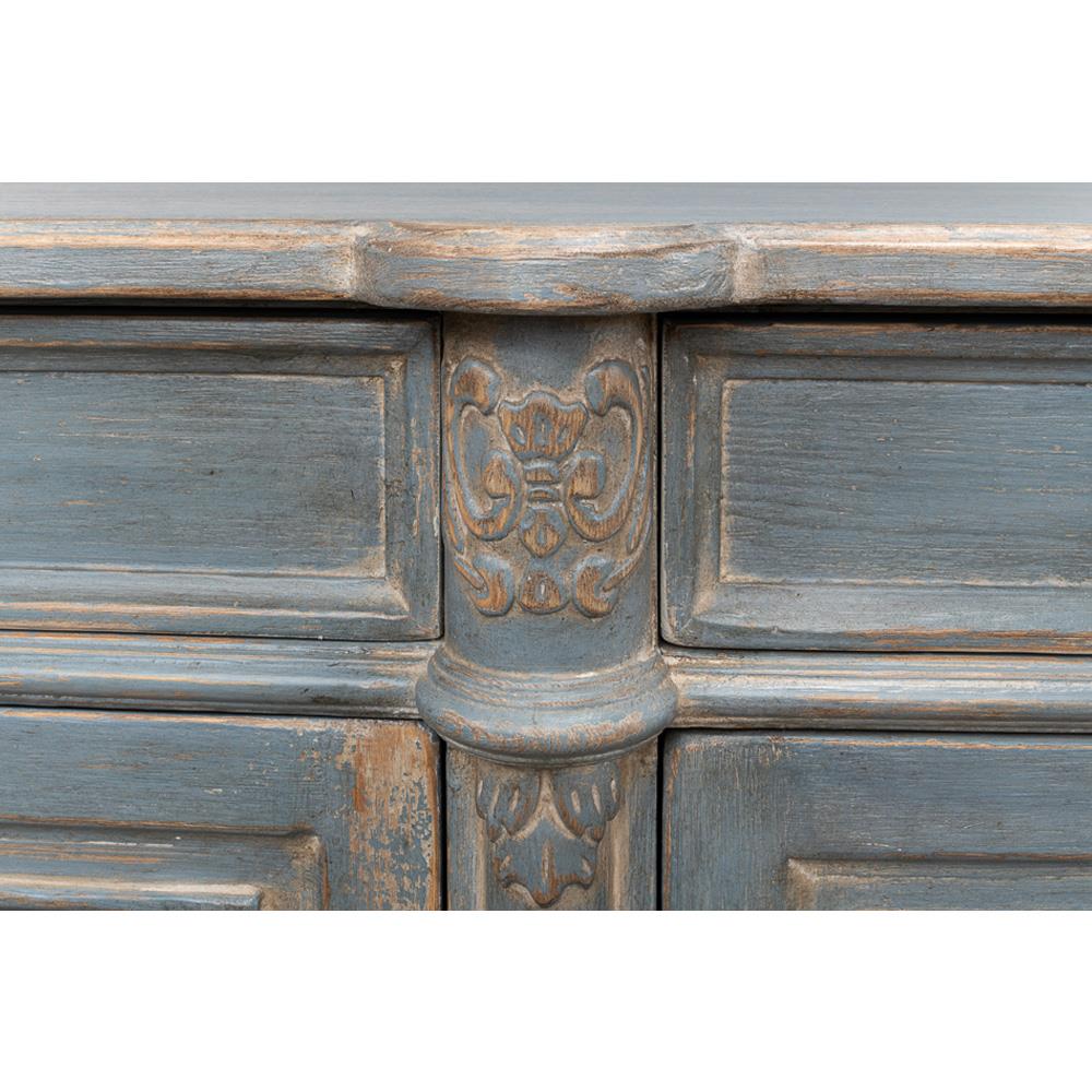 • Features 4 doors, 4 drawers, formidable carving at each front corner and legs that look inverted finials
