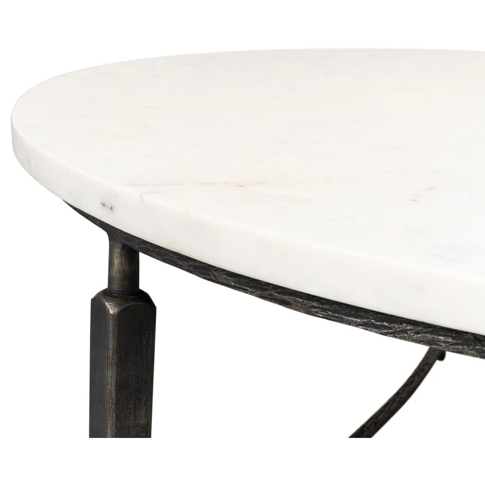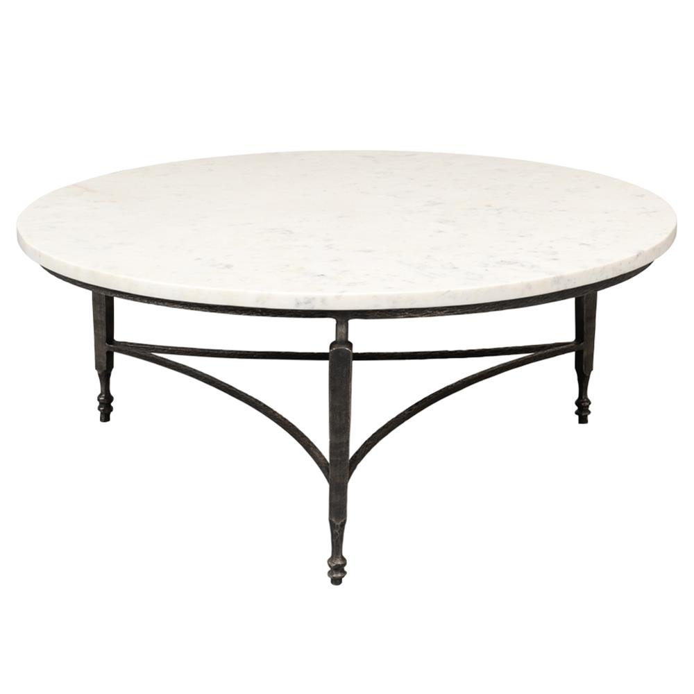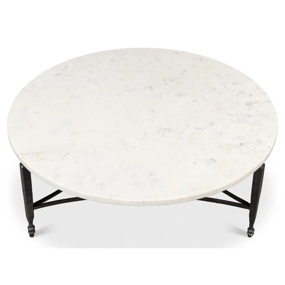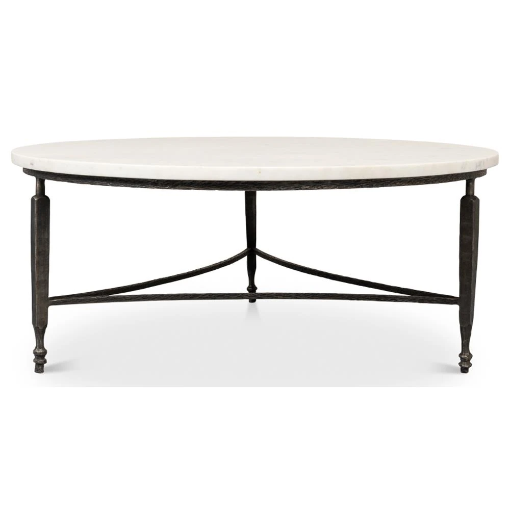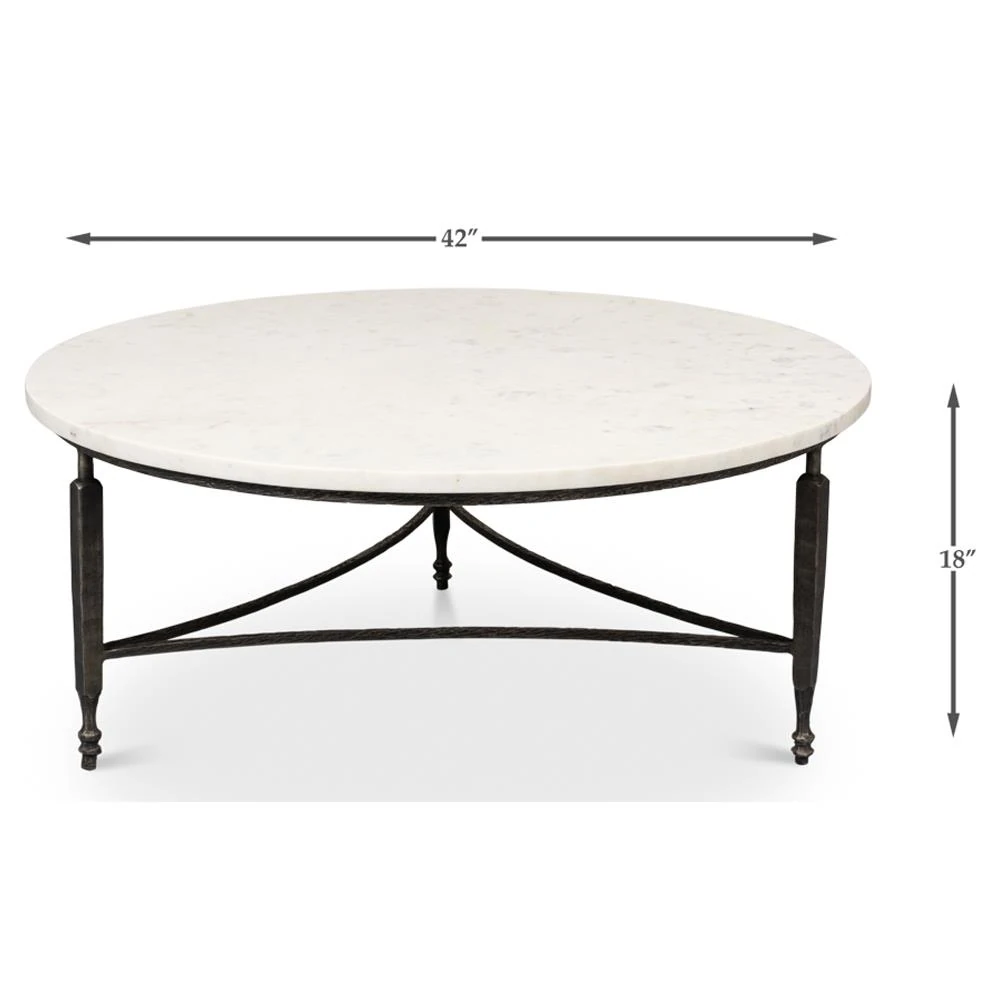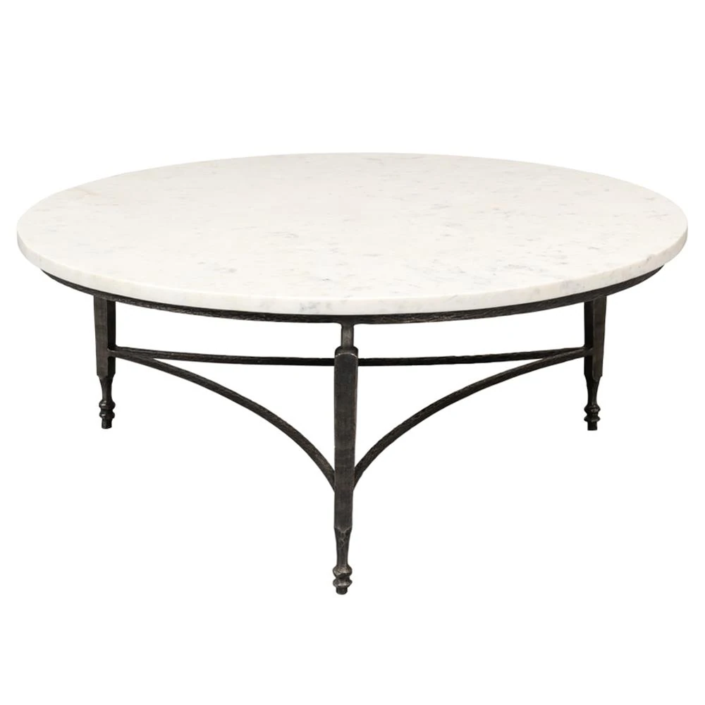 Elise French Country White Marble Black Iron Round Coffee Table