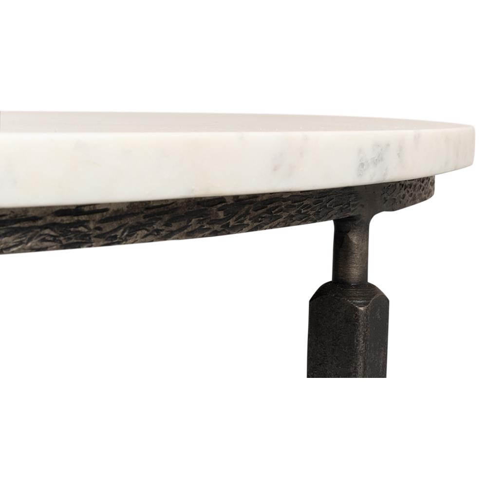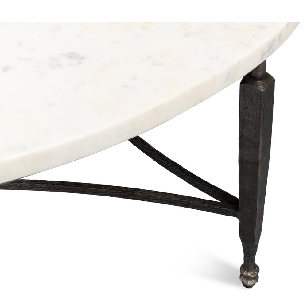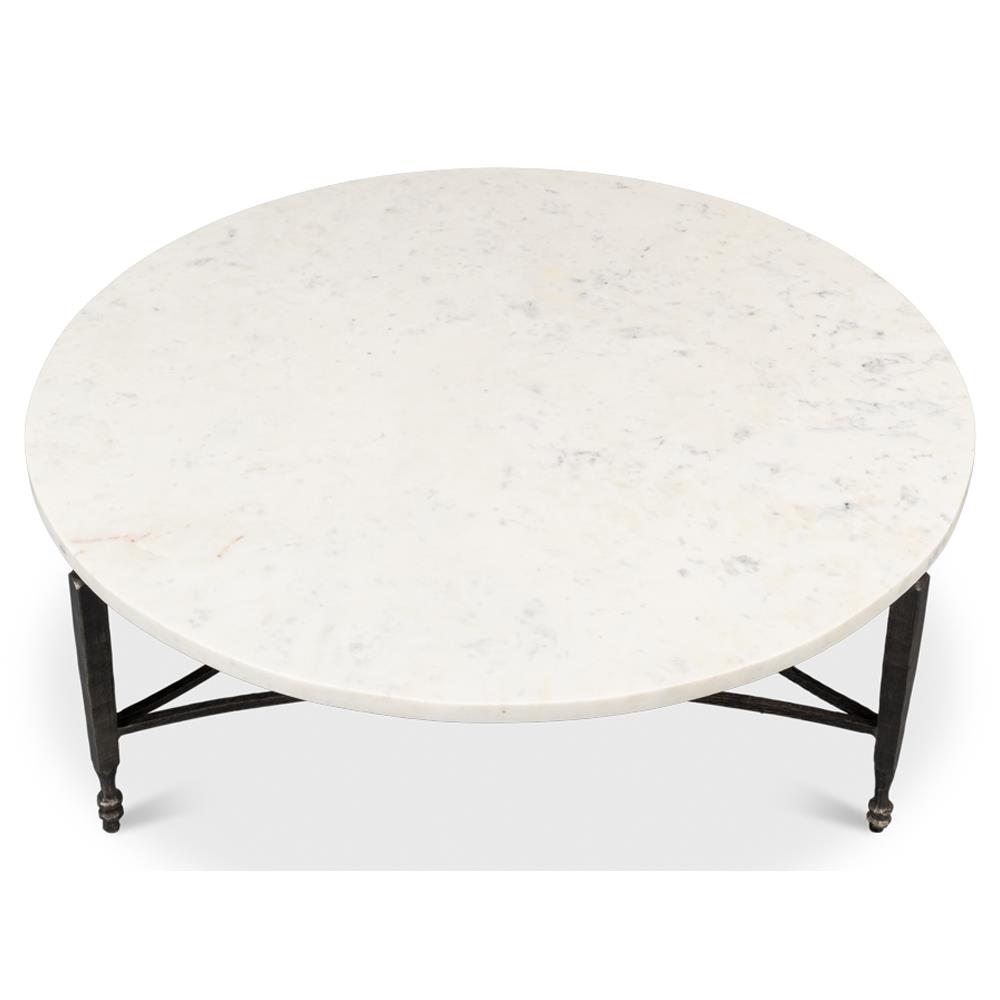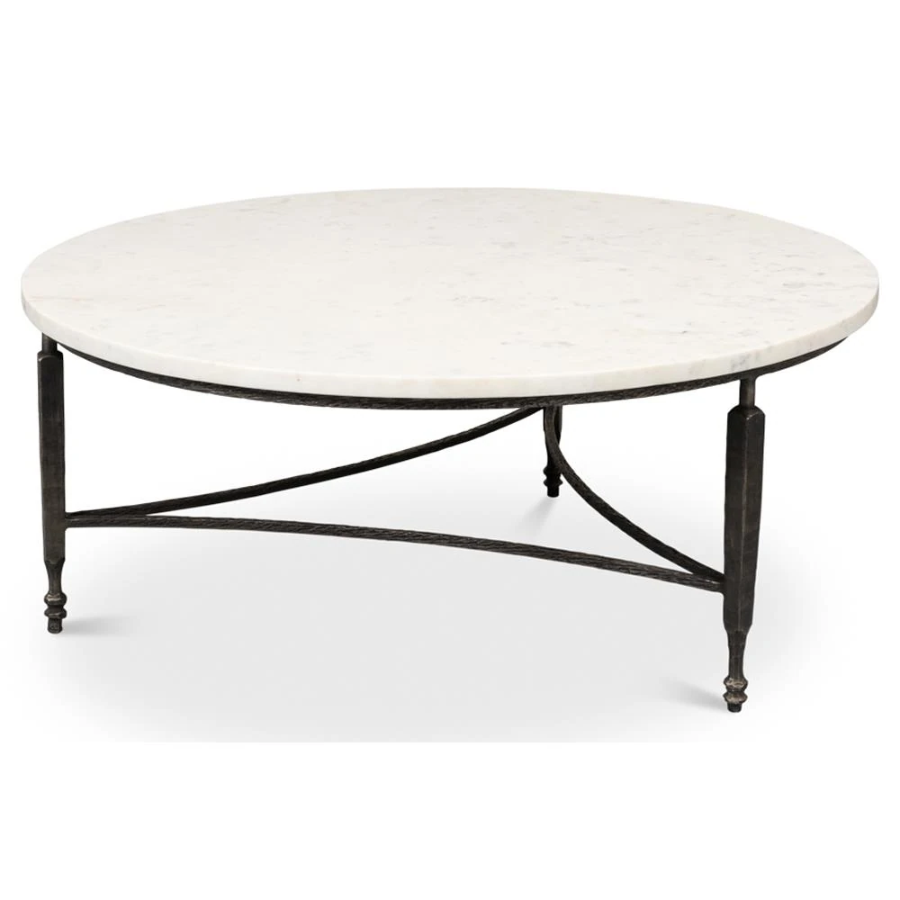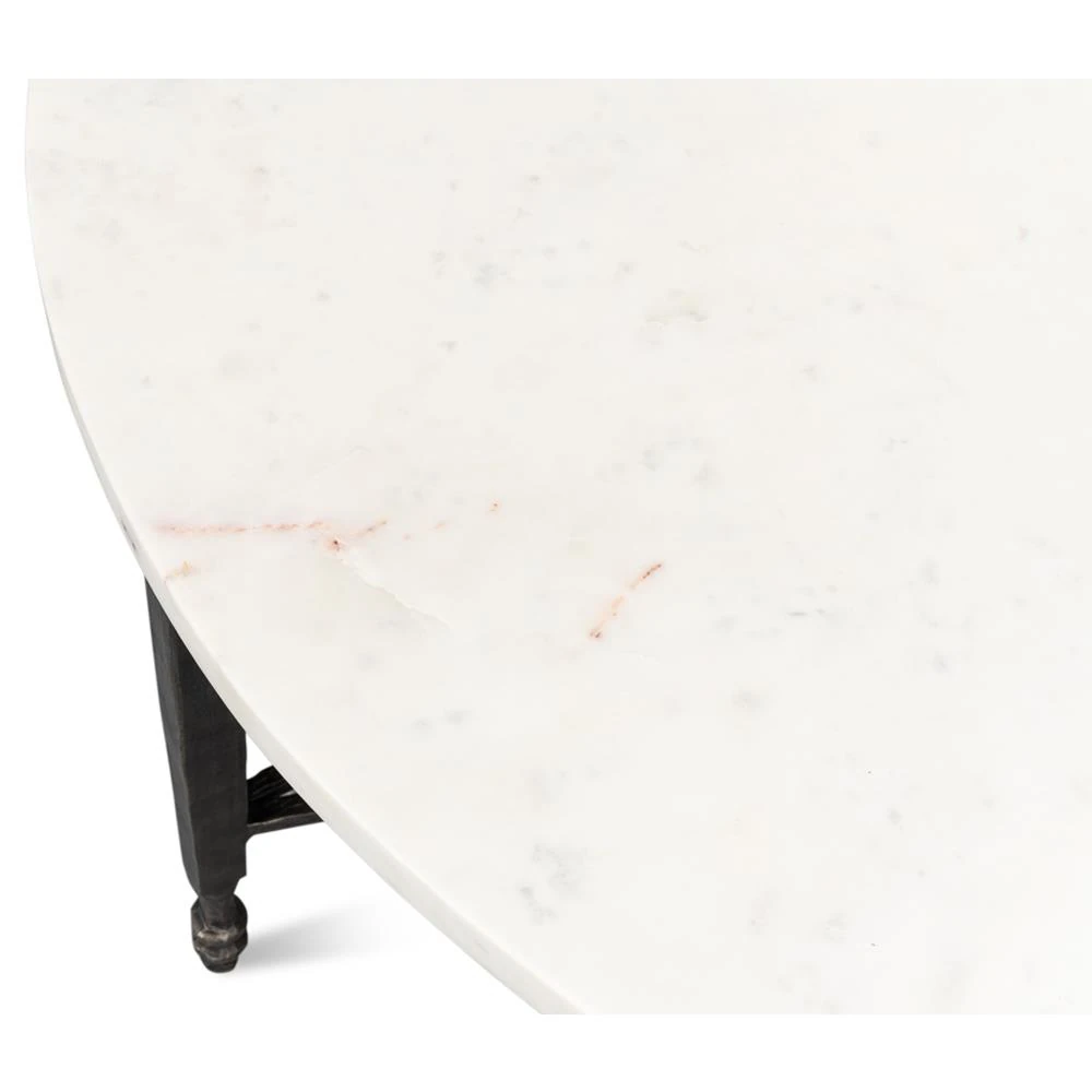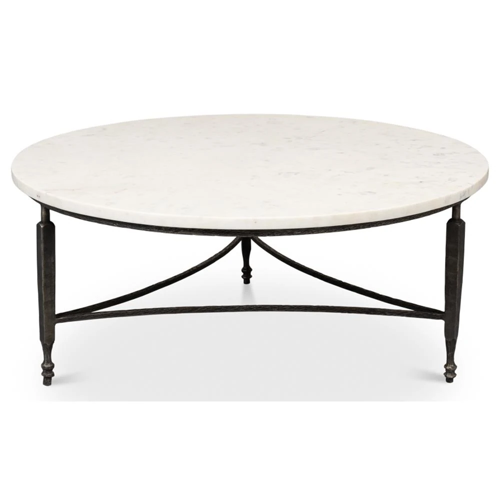 Elise French Country White Marble Black Iron Round Coffee Table