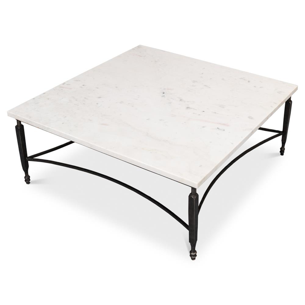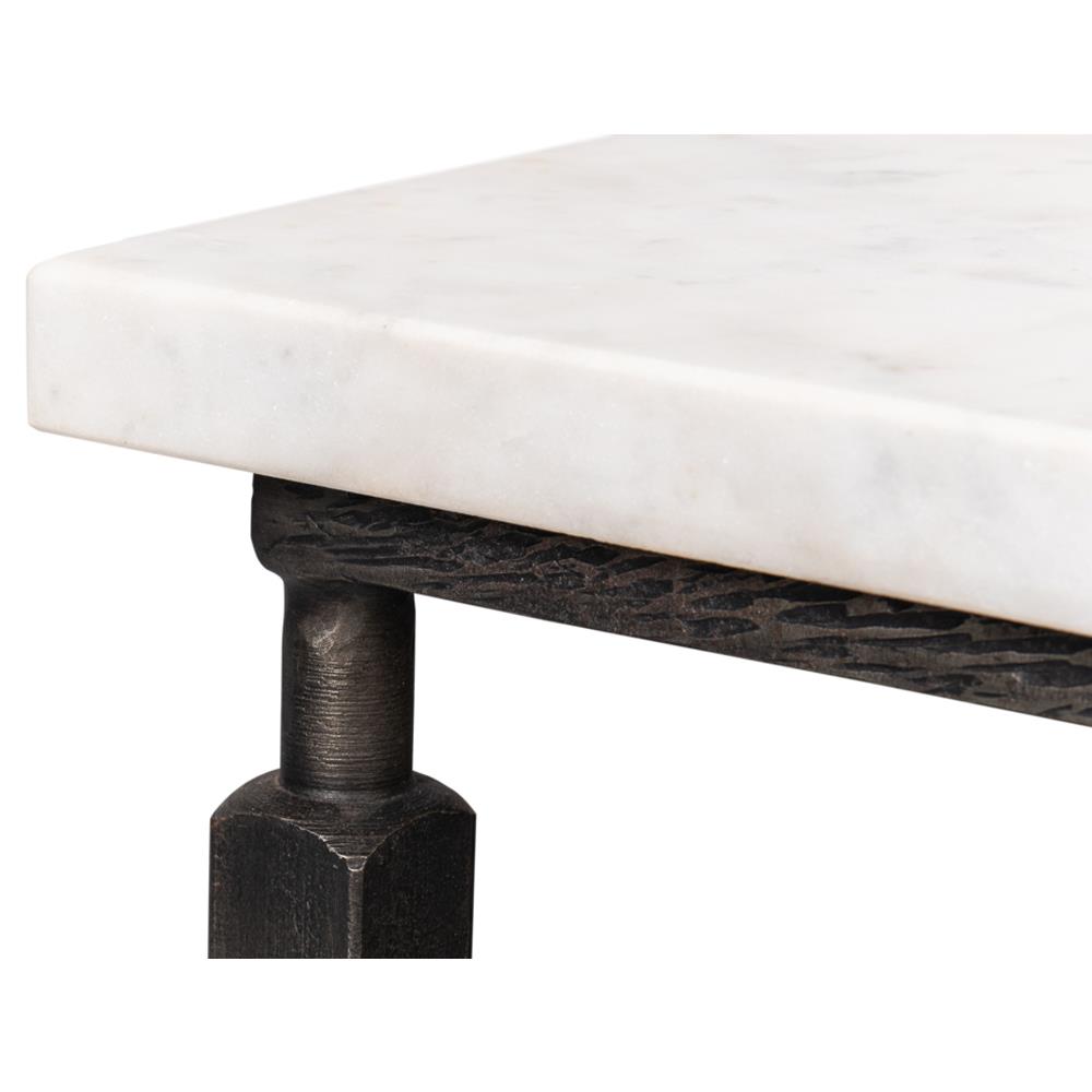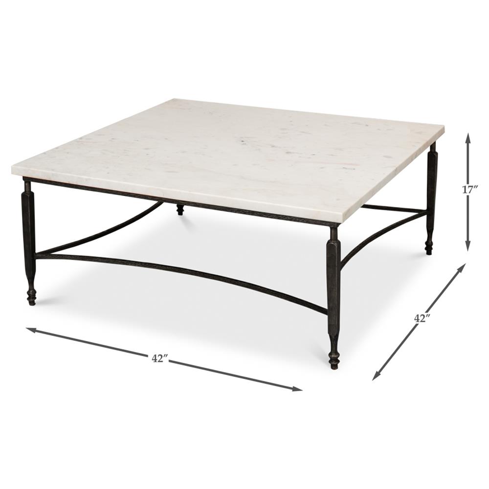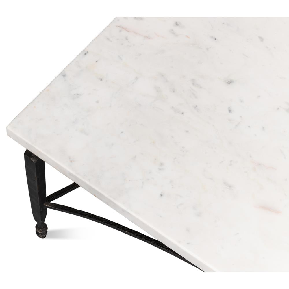 Rhea French Country White Marble Black Metal Rectangular Coffee Table