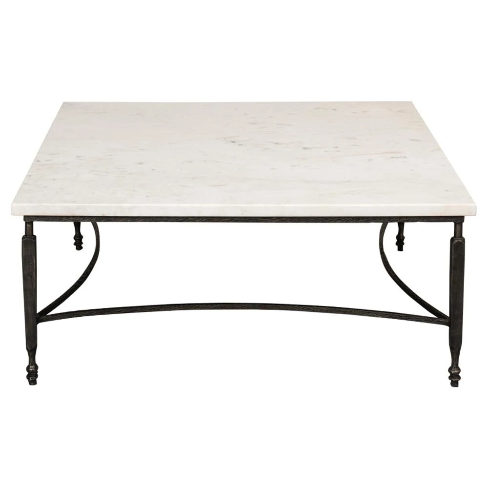 • Rhea French Country White Marble Black Metal Rectangular Coffee Table|Kathy Kuo Home