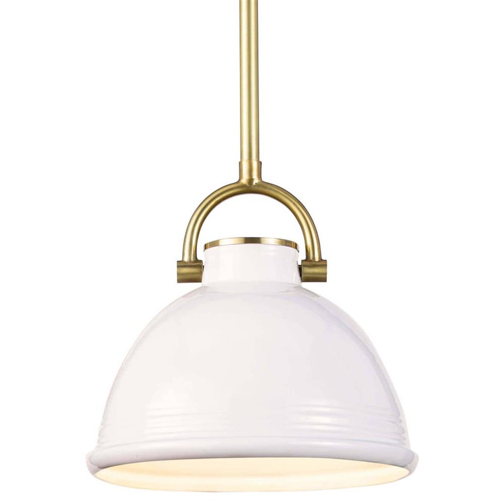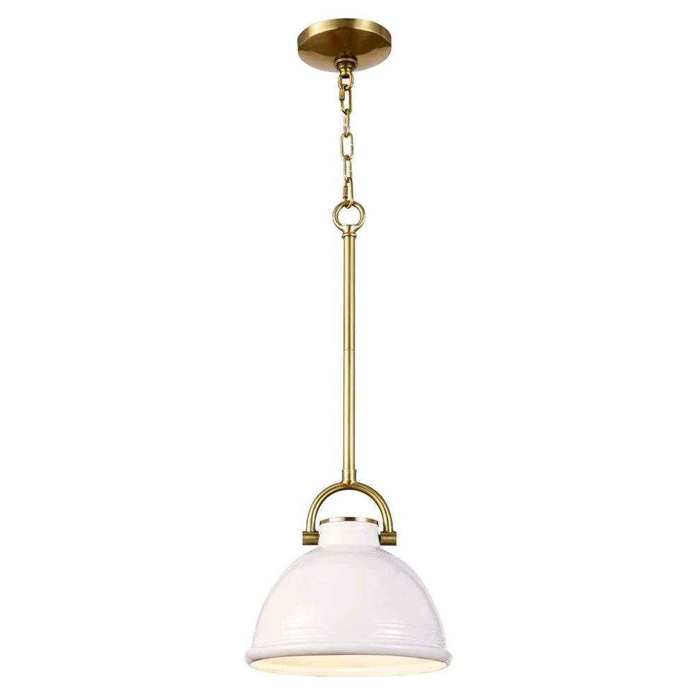 Eloise Industrial Loft White Ceramic Brass Accent Pendant - Small