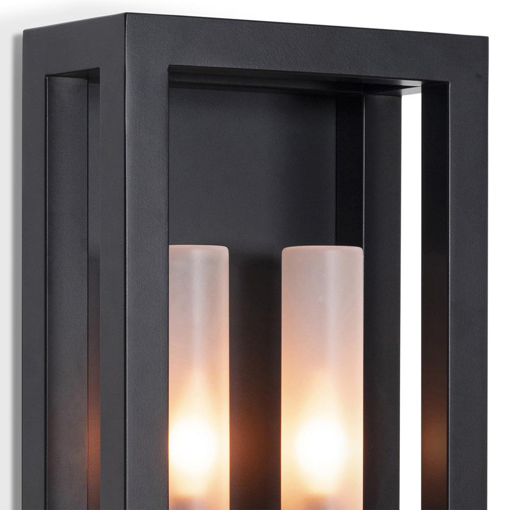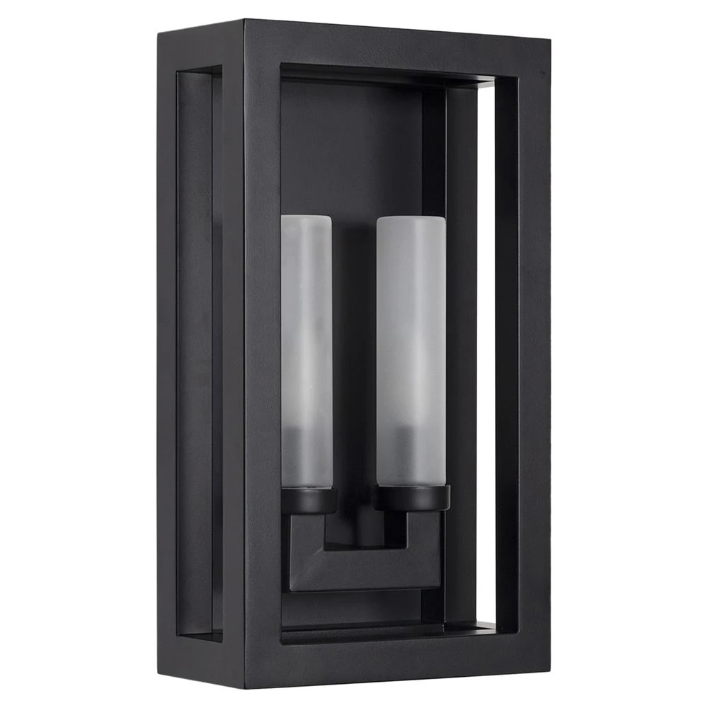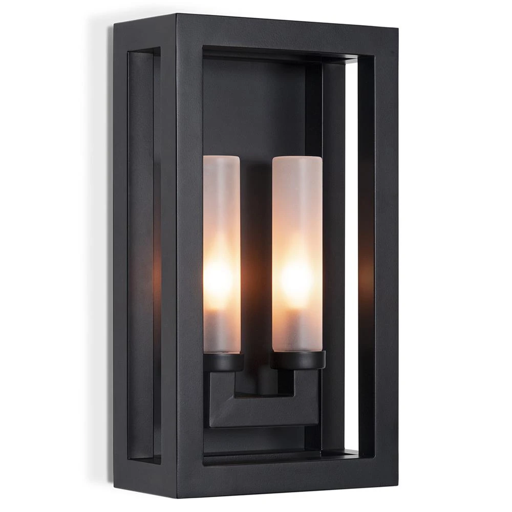 Tally Modern Classic Black Iron Glass Rectangular Outdoor Wall Sconce - Small
