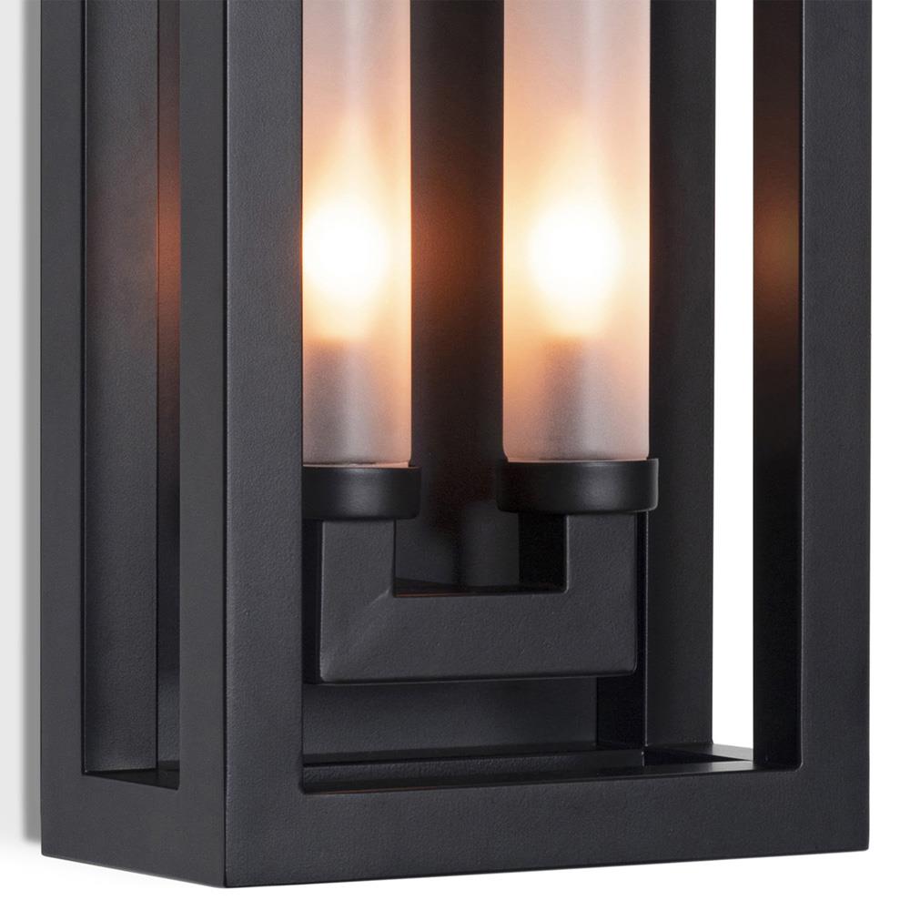 • Tally Modern Classic Black Iron Glass Rectangular Outdoor Wall Sconce - Small|Kathy Kuo Home