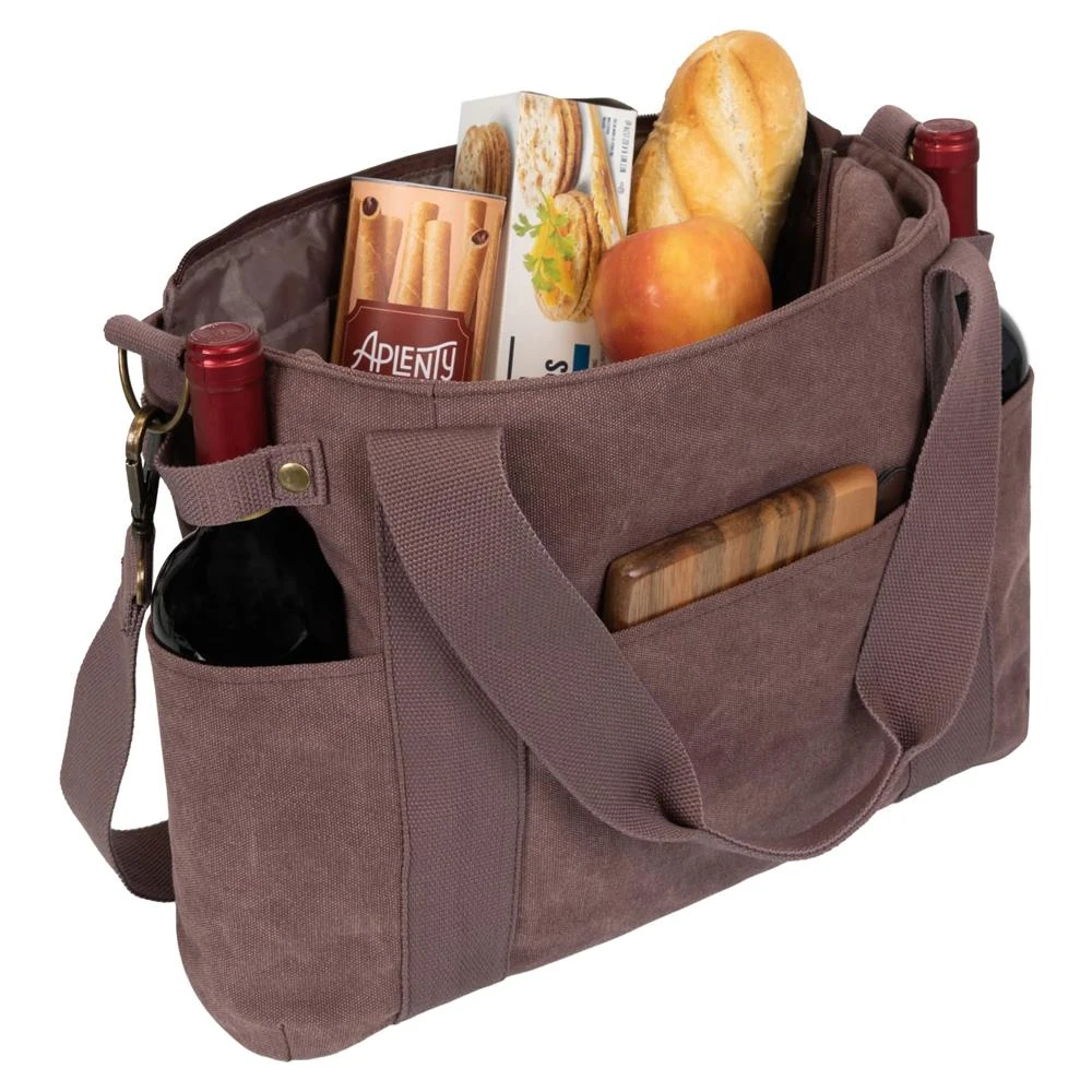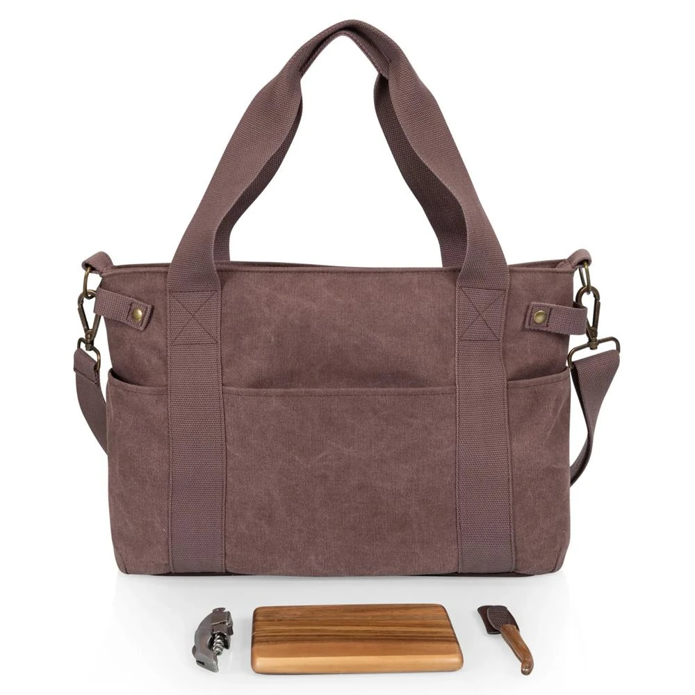 Payton Mid Century Brown Canvas Wine and Cheese Picnic Bag