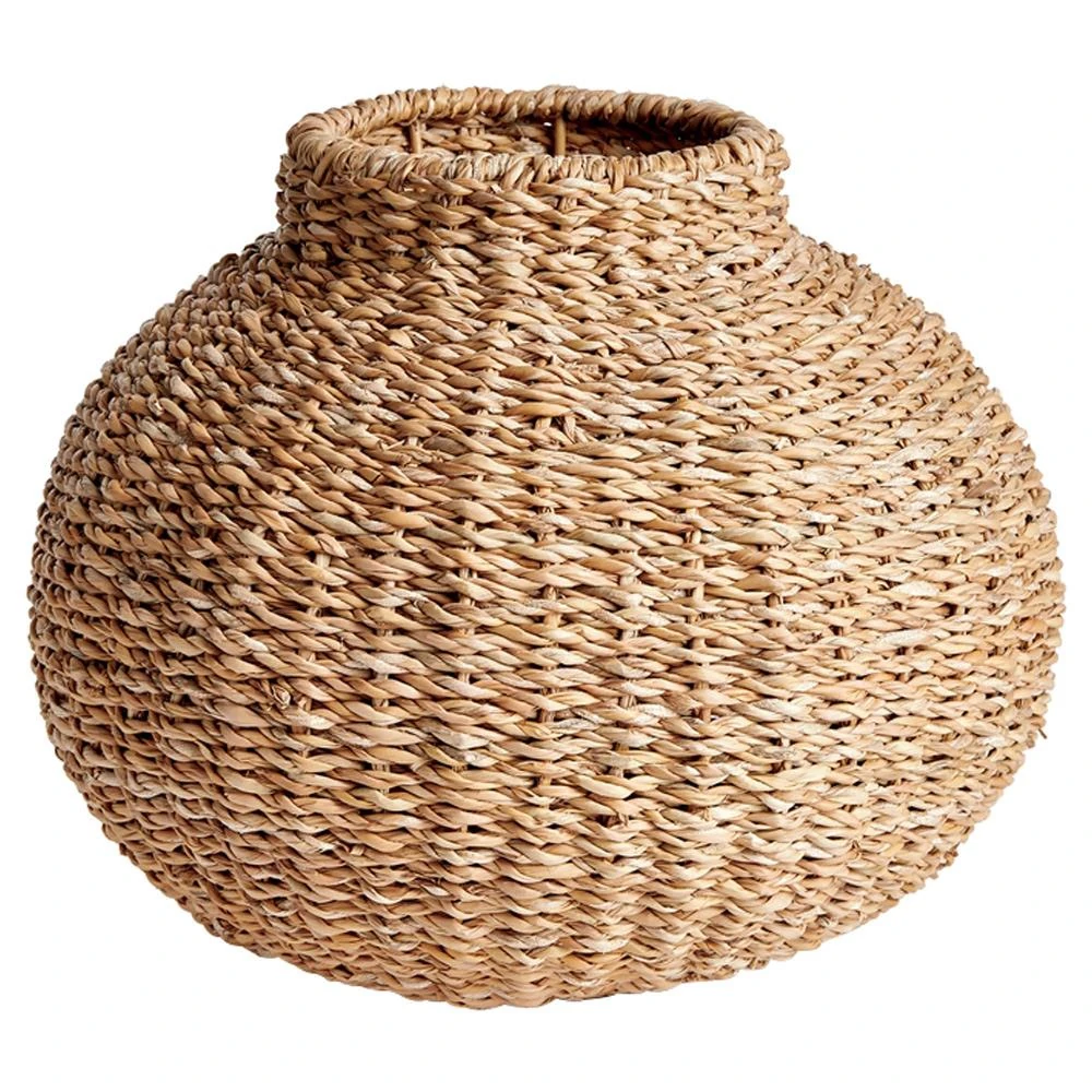 Zuri Coastal Beach Brown Woven Seagrass Round Decorative Table Vase