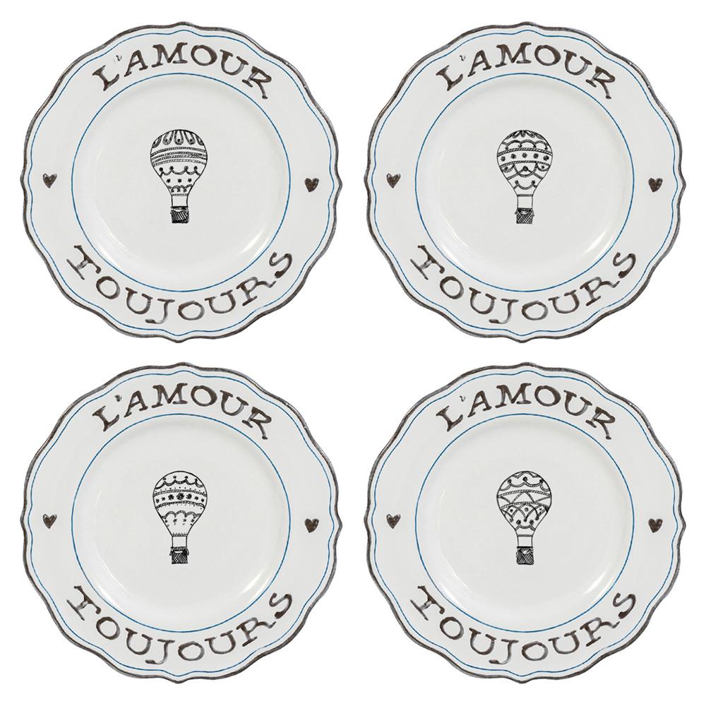 Juliska L'Amour Toujours French Country White Ceramic Salad Plate - Set of 4