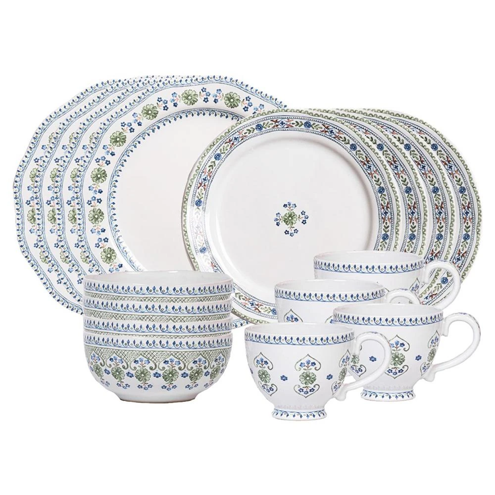 Juliska Villa Seville French Chambray Floral Ceramic 16 Piece Place Setting