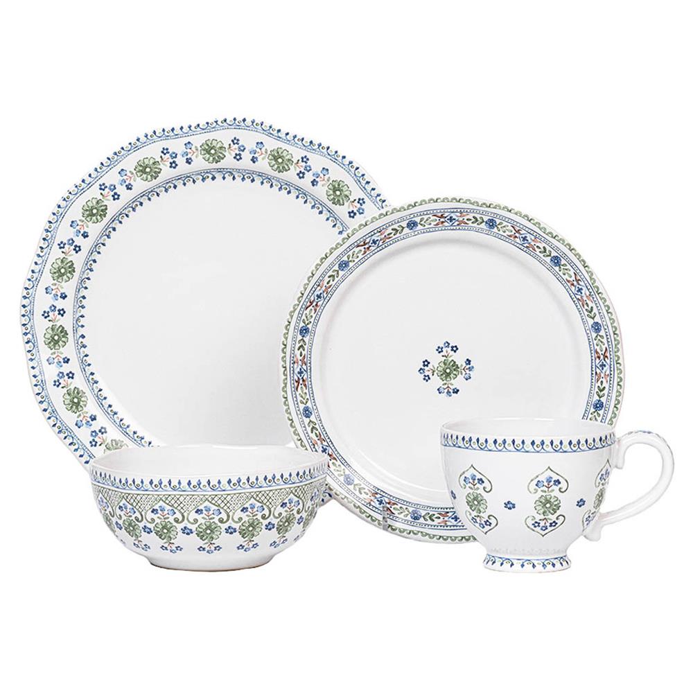 Juliska Villa Seville French Chambray Floral Ceramic 16 Piece Place Setting