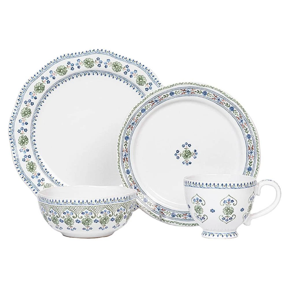 • Juliska Villa Seville French Chambray Floral Ceramic 16 Piece Place Setting|Kathy Kuo Home