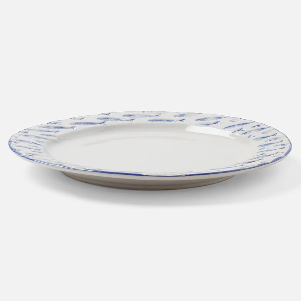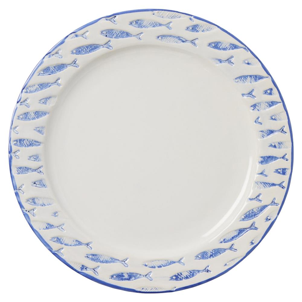 Gideon Coastal White Stoneware Blue Fish Dinner Plate - Set of 4