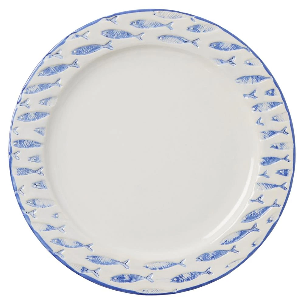 Gideon Coastal White Stoneware Blue Fish Salad Plate - Set of 4