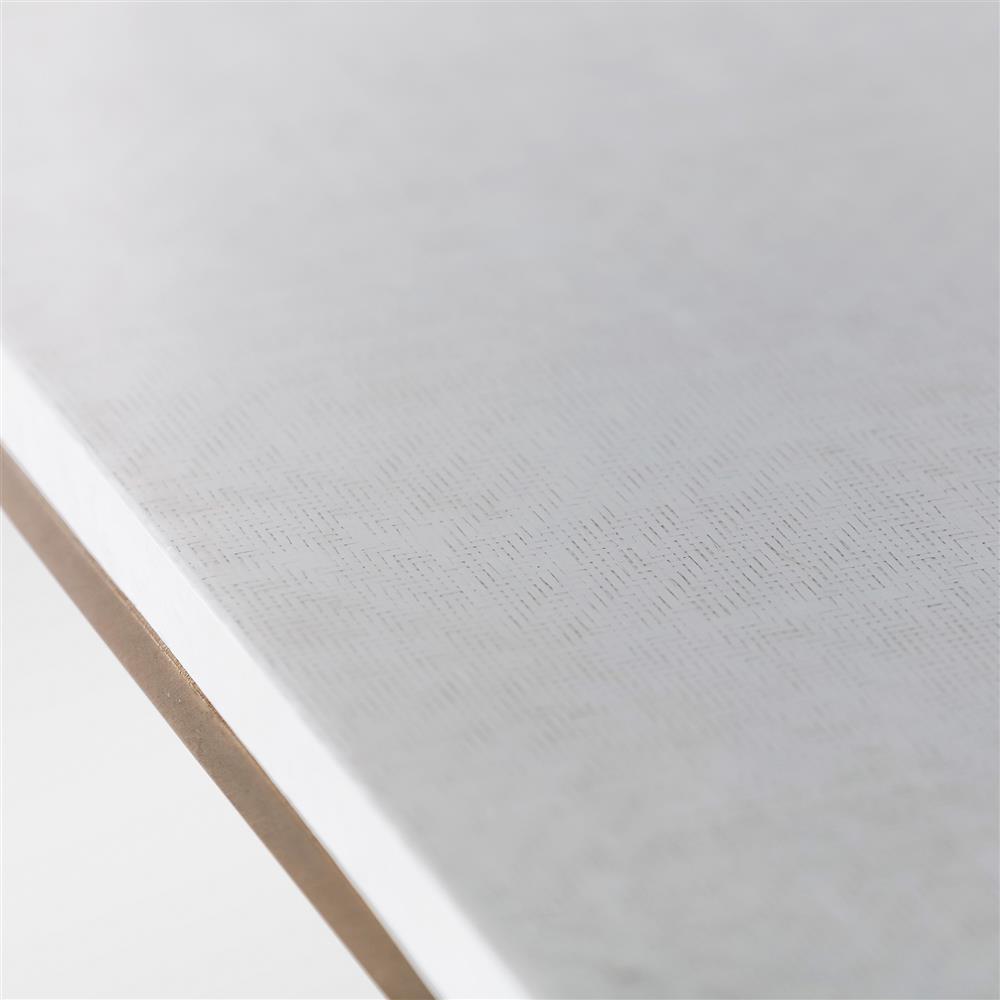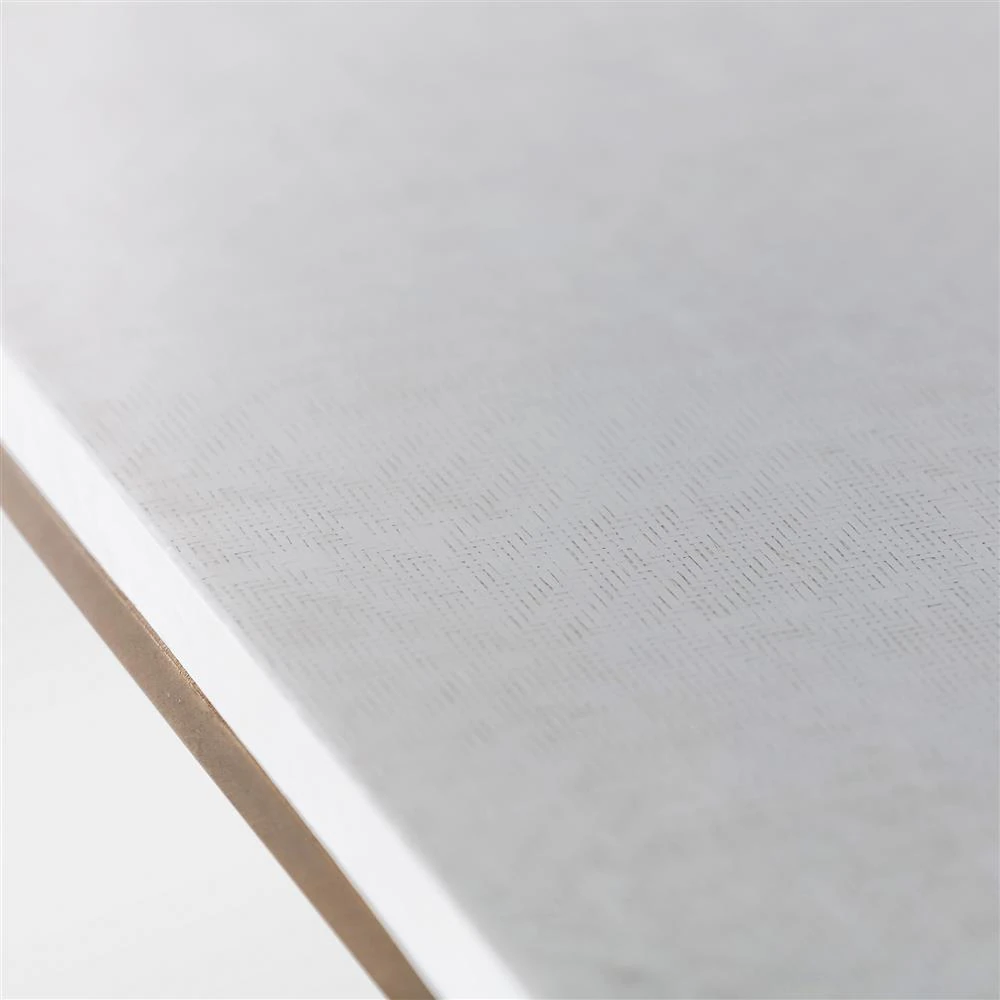 • Finished in white faux seagrass pattern and brushed brass