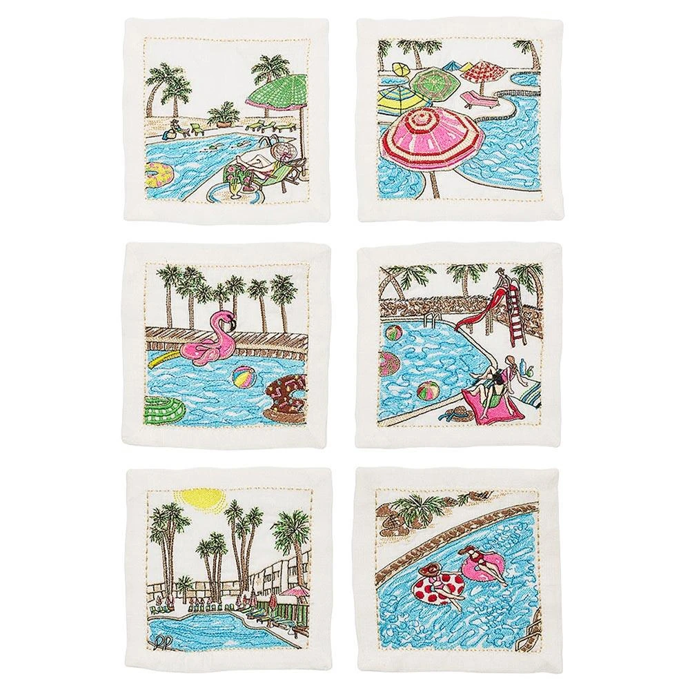Pool Day Modern White Linen Cocktail Napkin - Set of 6