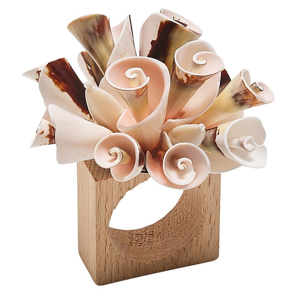 • Features handmade clusters of spiral shells in various sizes. As the shells are naturally occurring, each piece boasts its unique variations, no two napkin rings will be alike.
