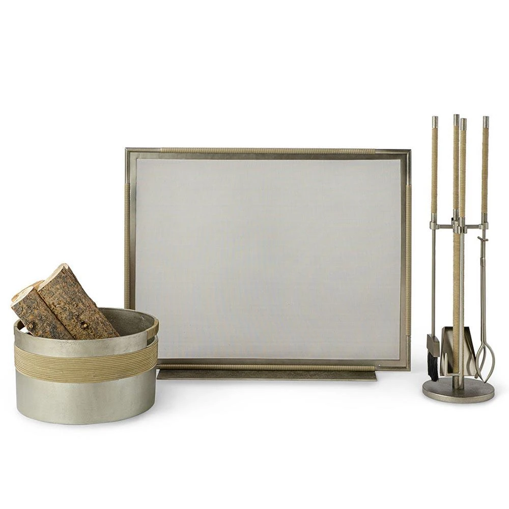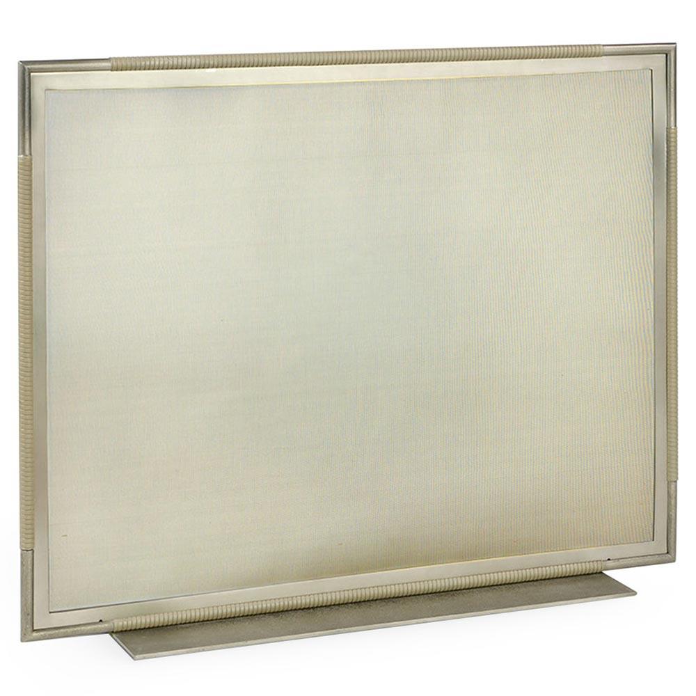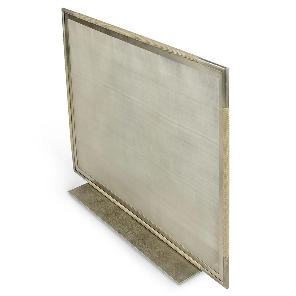 Palecek Landon Antique Pewter Metal Frame Taupe Faux Leather Fireplace Screen