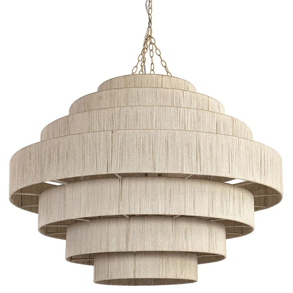 Palecek Everly Coastal Beach Natural Abaca Rope Taupe Metal Frame Chandelier