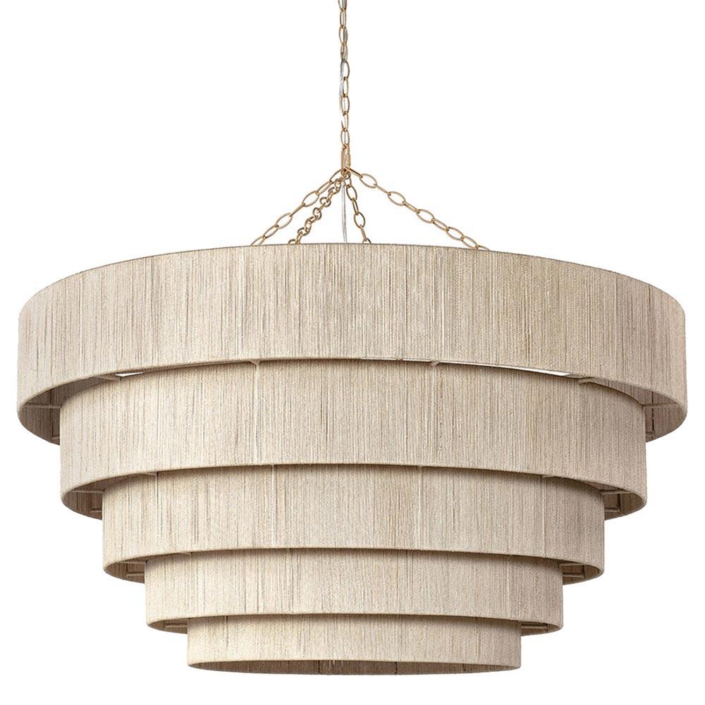 Palecek Everly Coastal Natural Abaca Rope Taupe Metal Frame 5 Tier Chandelier