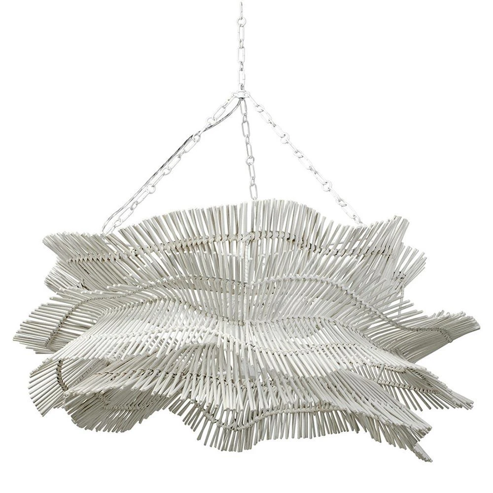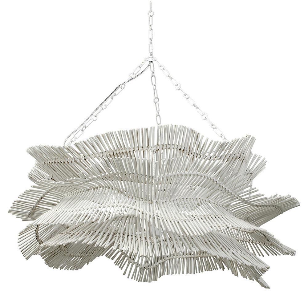 Palecek Miramar Coastal Beach Chalk White Rattan Chandelier