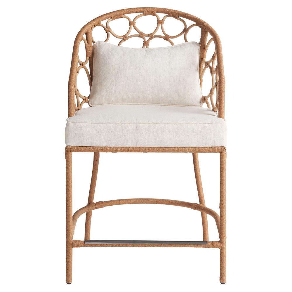 • Larissa Coastal Beach Cream Upholstered Linen Brown Oak Woven Rope Counter Stool|Kathy Kuo Home