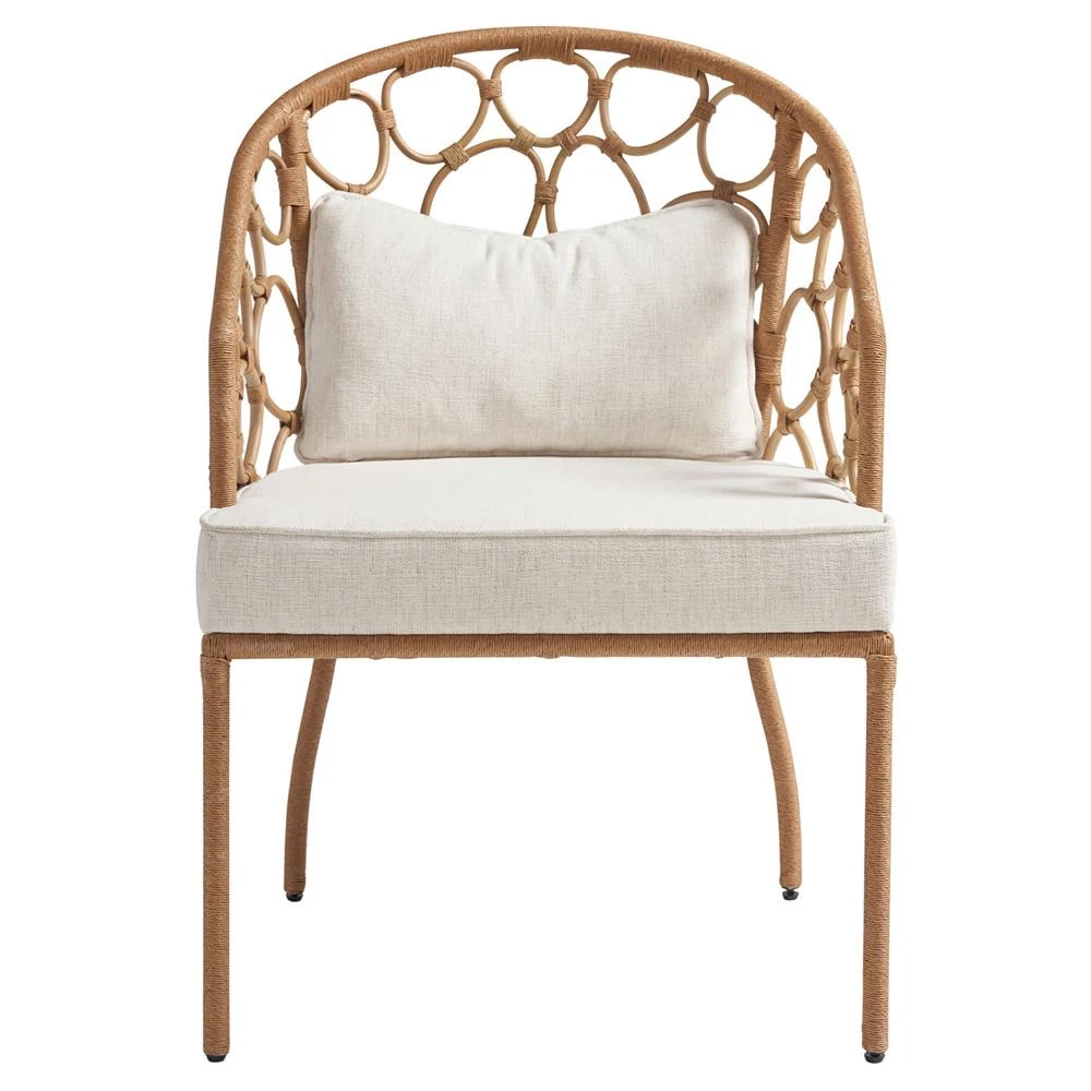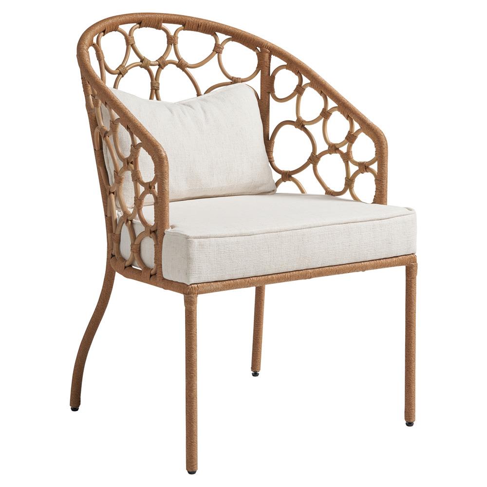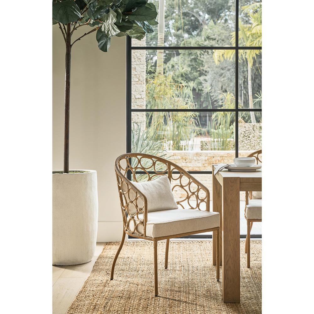 • Judy Coastal Beach White Performance Brown Rattan Dining Arm Chair|Kathy Kuo Home