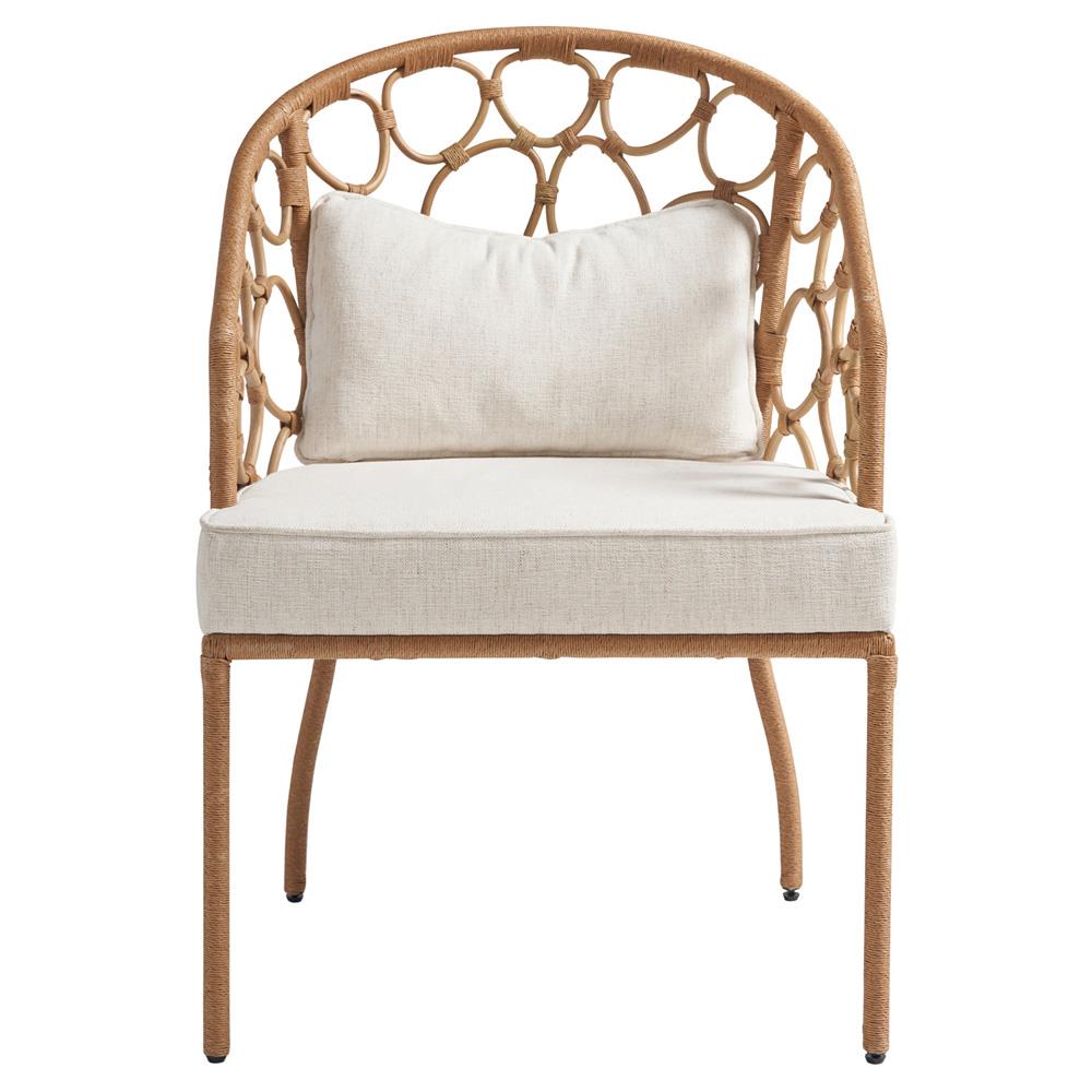 Camilla Coastal Off White Upholstered Natural Woven Rattan Dining Arm Chair