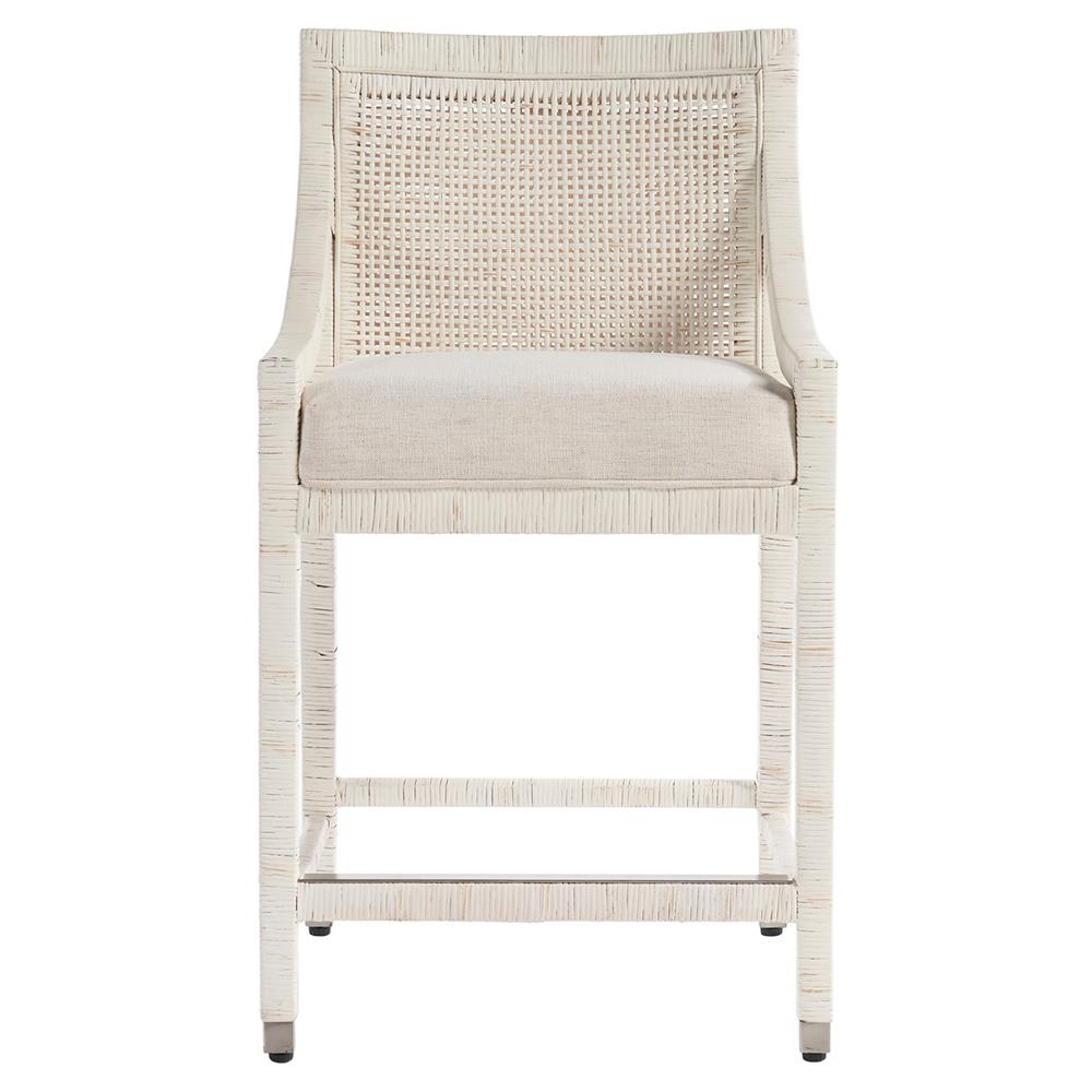 • Judy Coastal Beach White Performance Green Rattan Counter Stool|Kathy Kuo Home