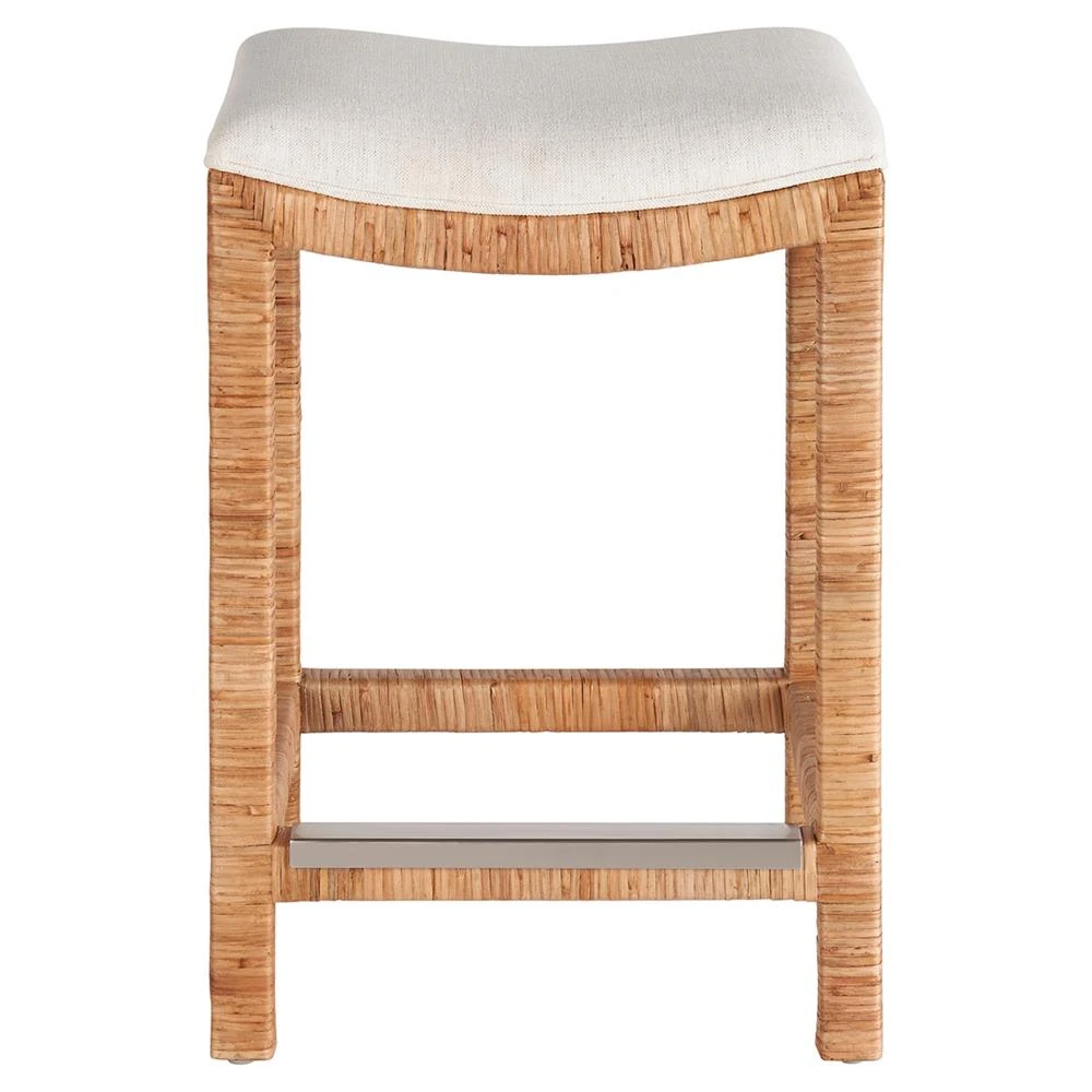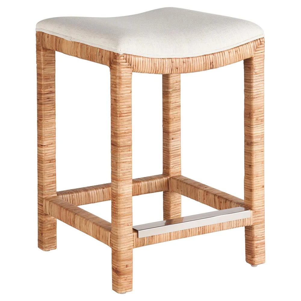 Carter Coastal Beach Heathered Ivory Crypon Performance Rattan Counter Stool