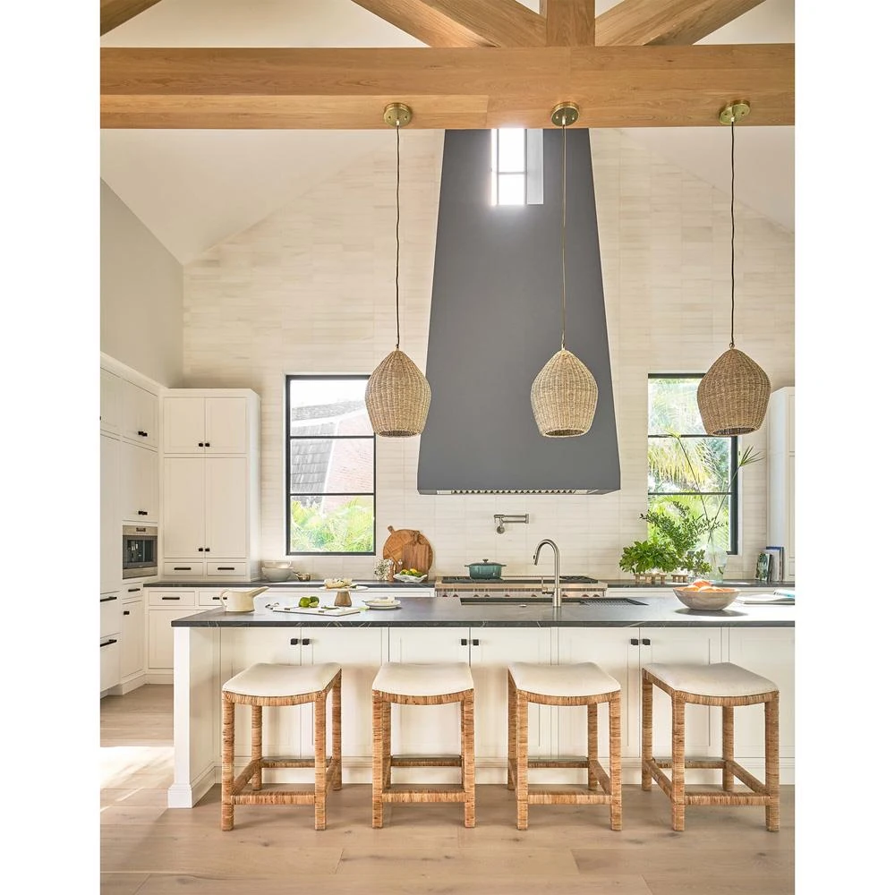 • Zachary Coastal Beach Natural Grey Oak Wood Cane Back Counter Stool|Kathy Kuo Home