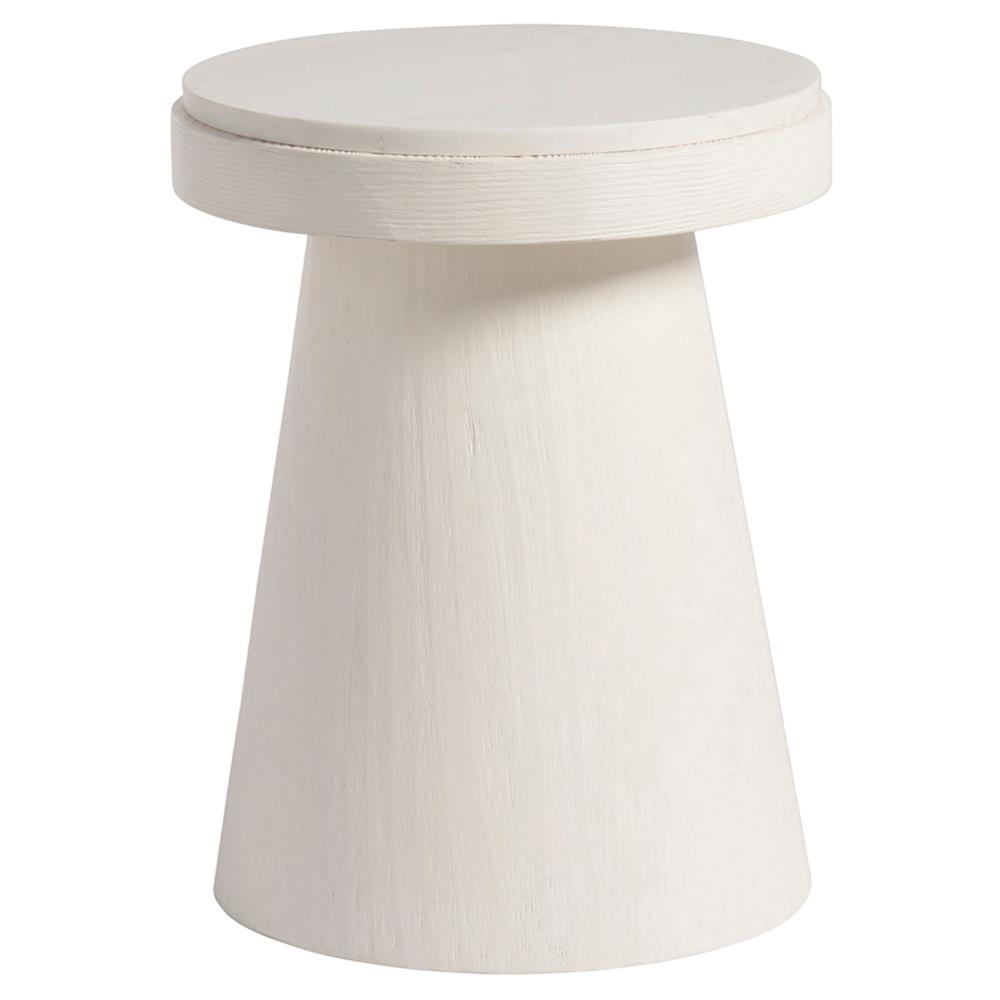 Carter Modern Classic White Sand Stone Oak Round Pedestal Side Table