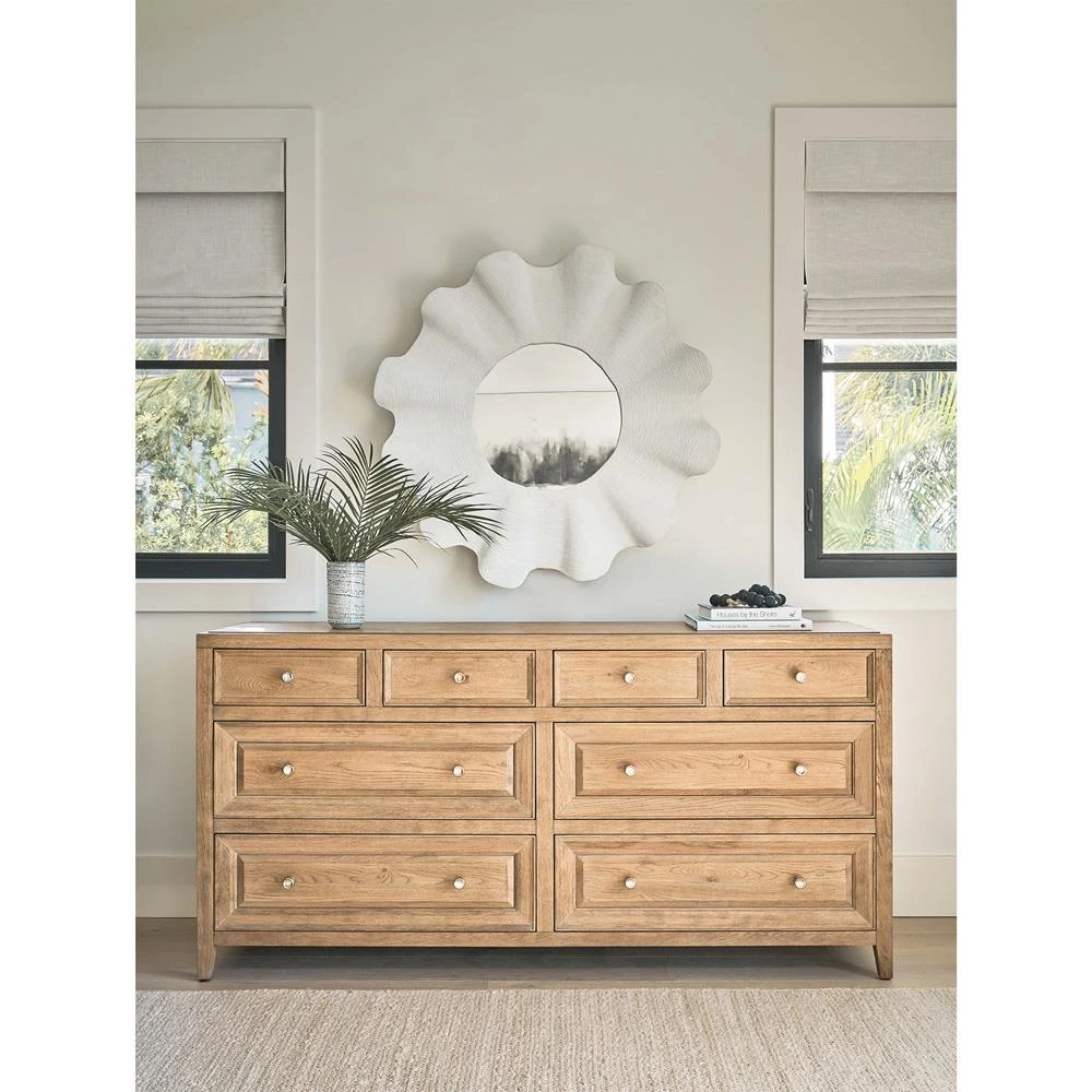 • Brooke Coastal Beach Natural Wood Beveled Round Wall Mirror|Kathy Kuo Home